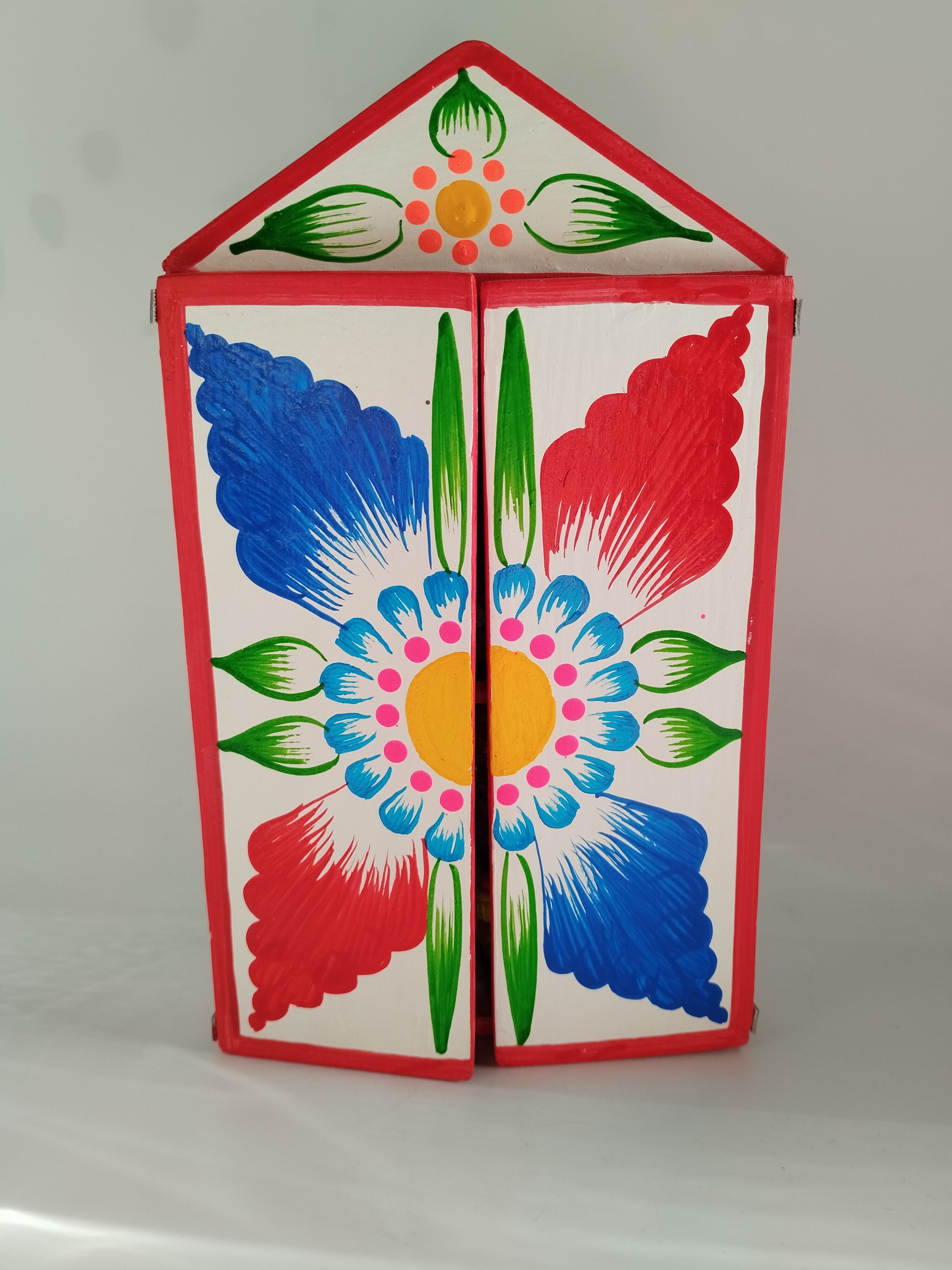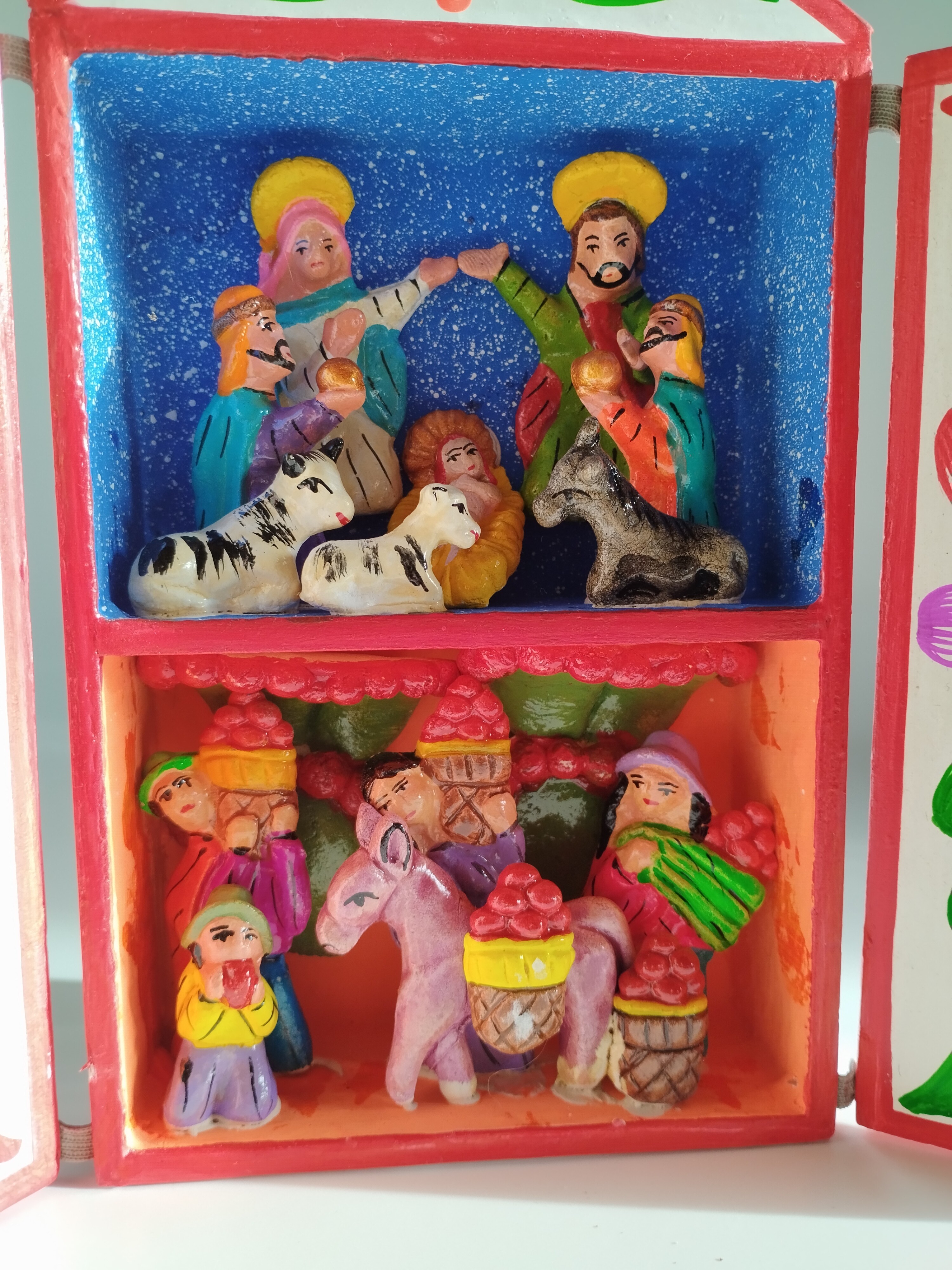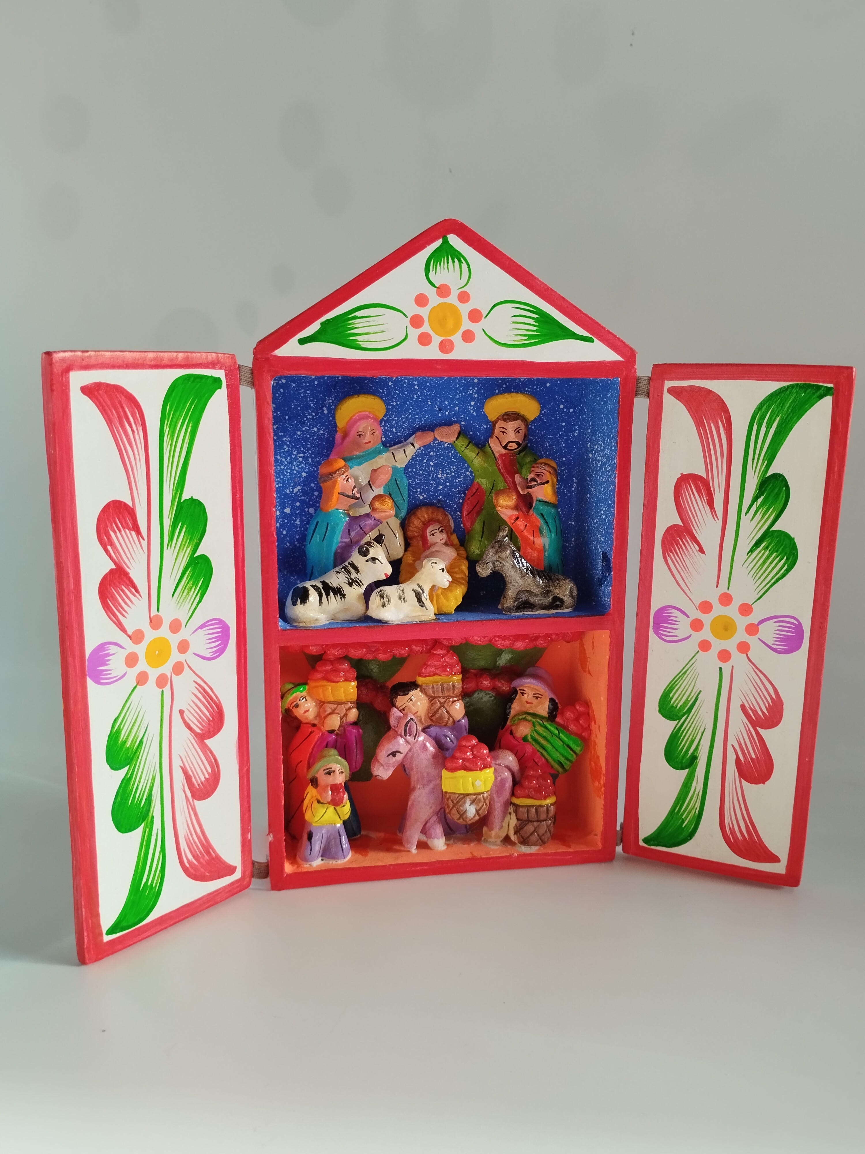 Wykonana ręcznie szopka z drewna.