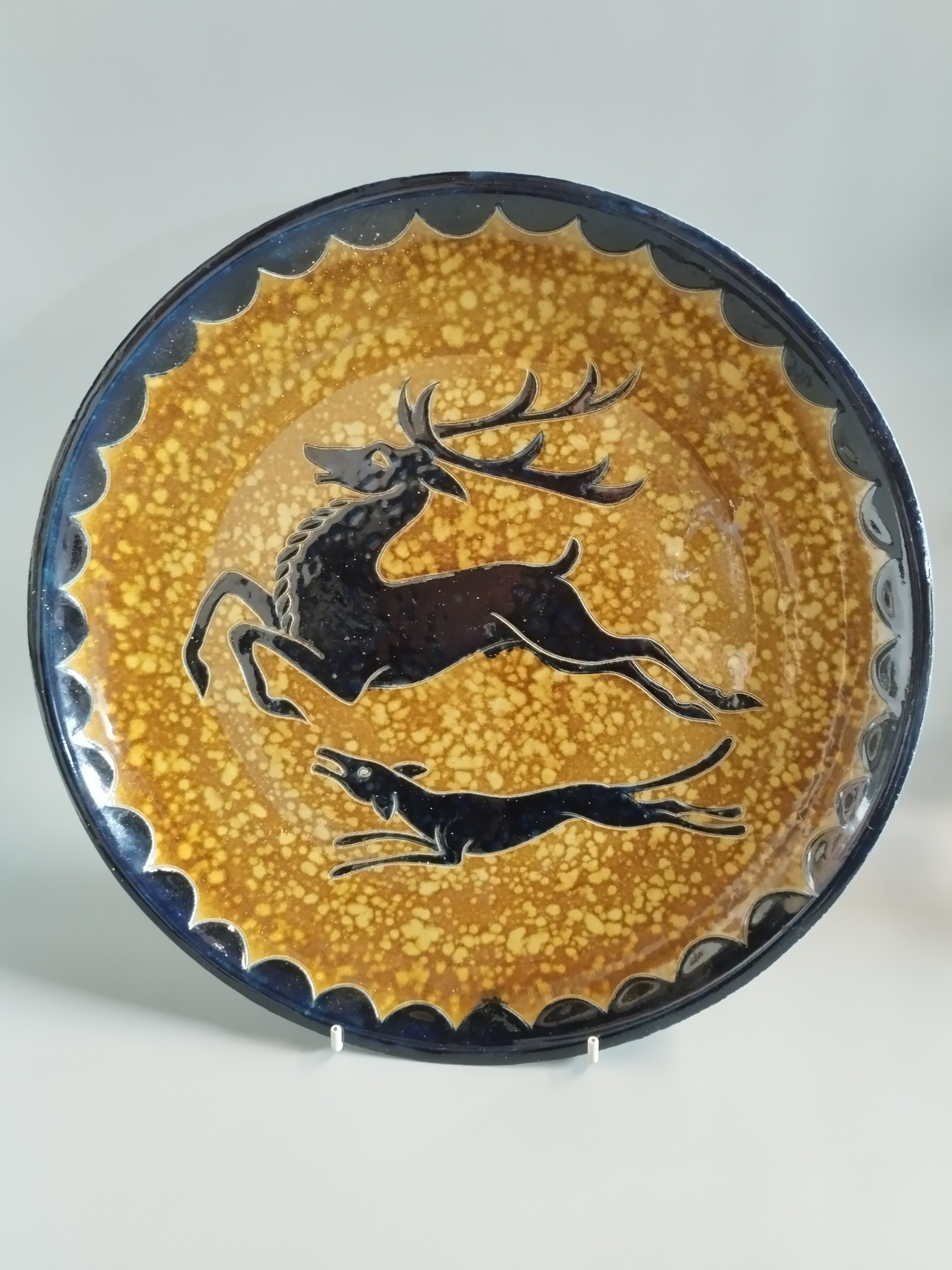 Wykonana ręcznie niemiecka dekoracyjna patera ceramiczna z naklejką "bleifreie Innenglasur" (szkliwo wewnętrzne wolne od ołowiu).
