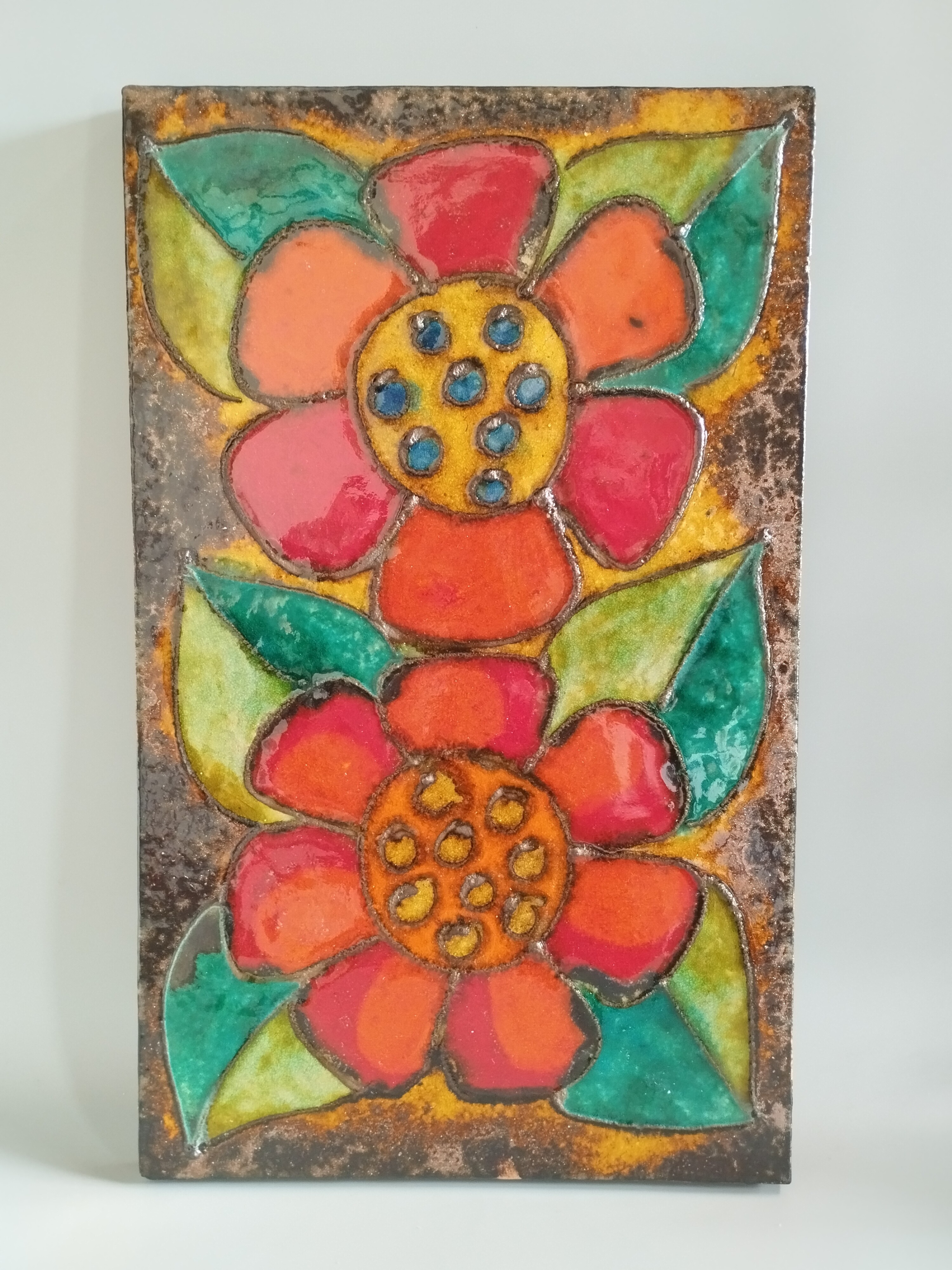 Wykonany ręcznie dekor ceramiczny do powieszenia na ścianie.