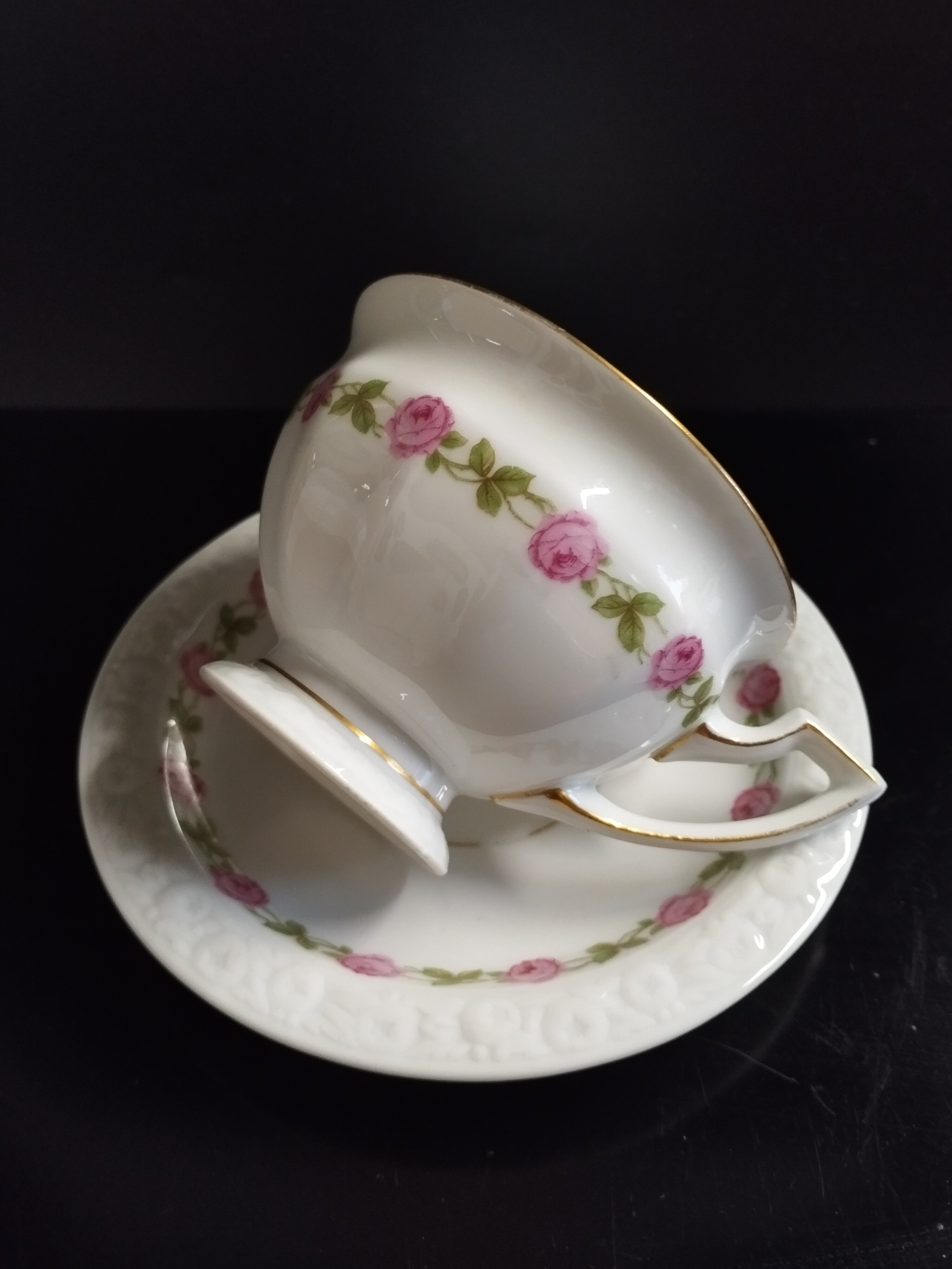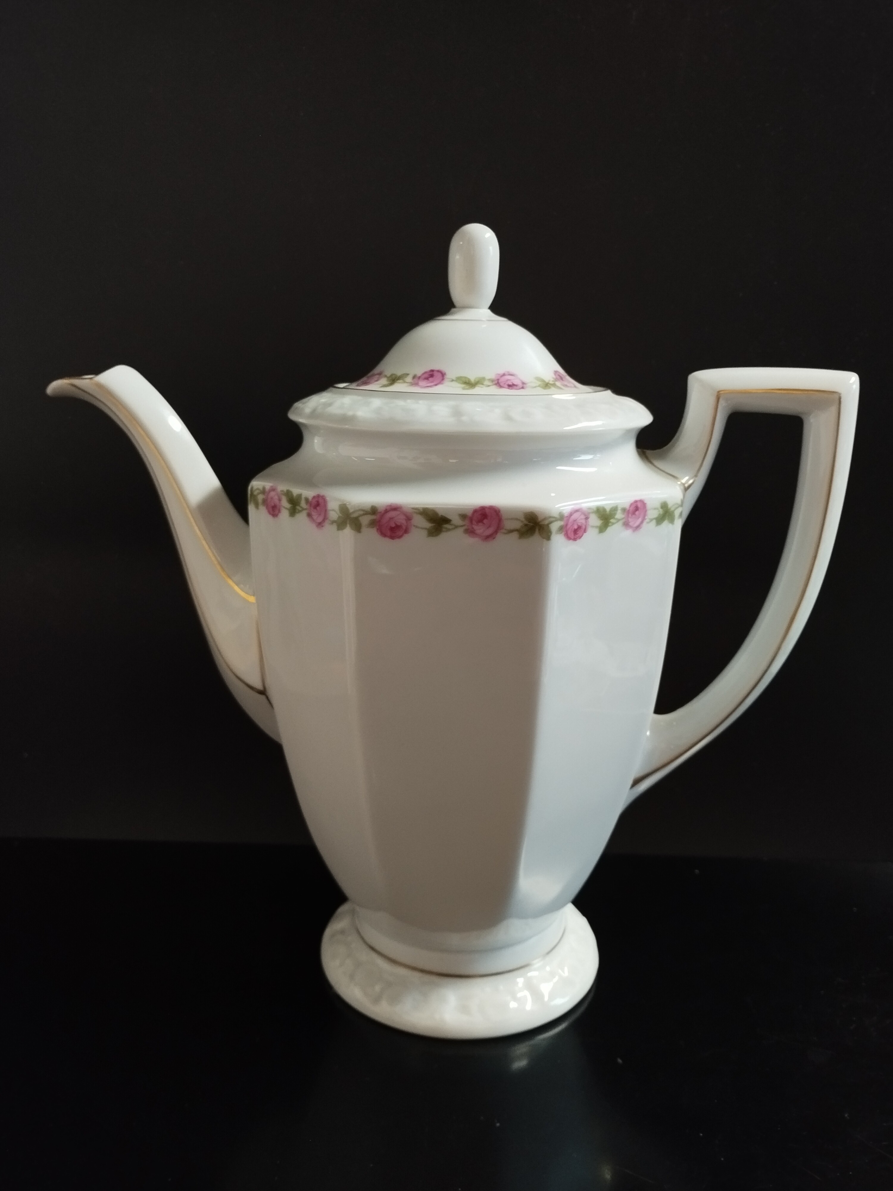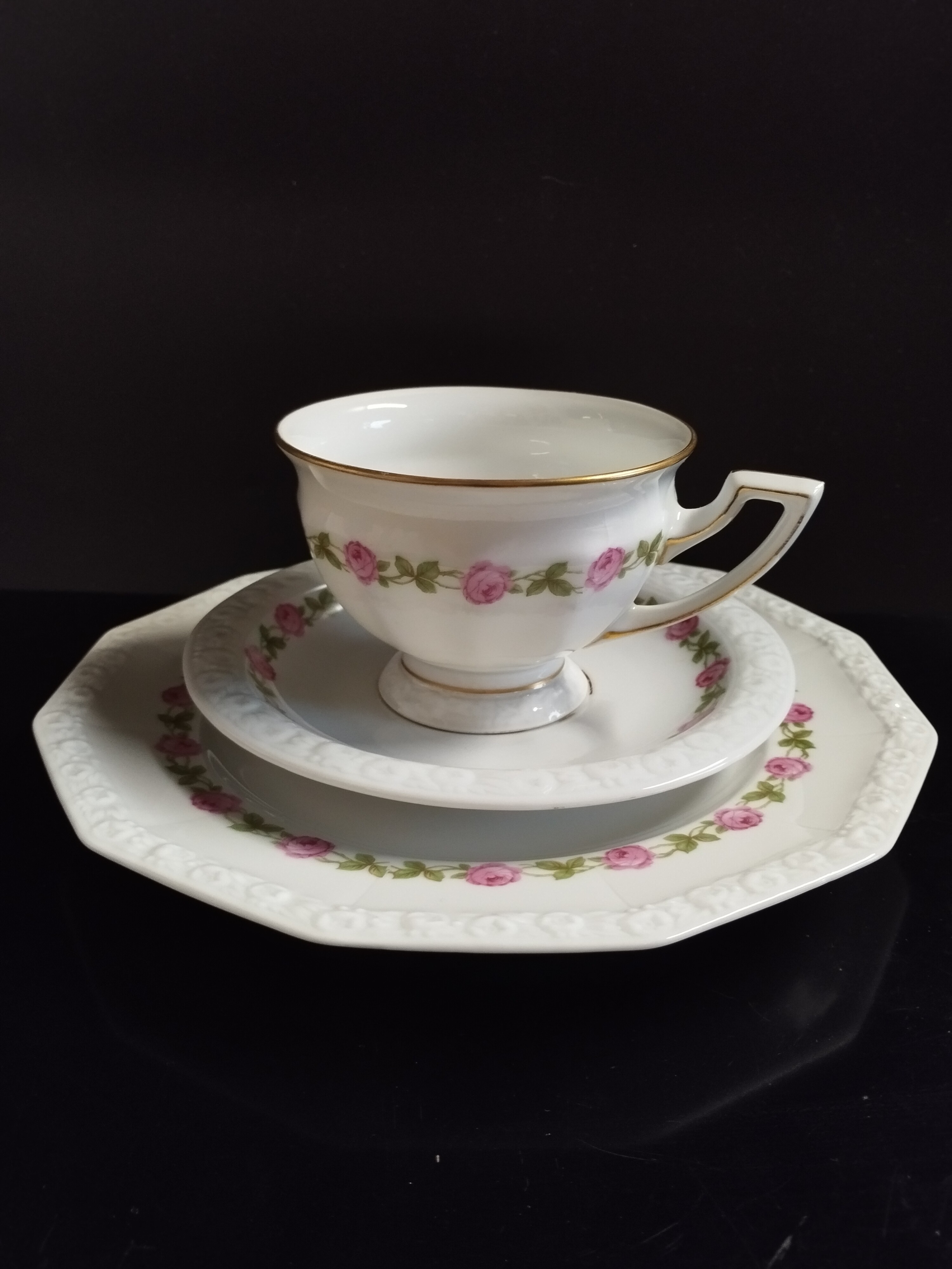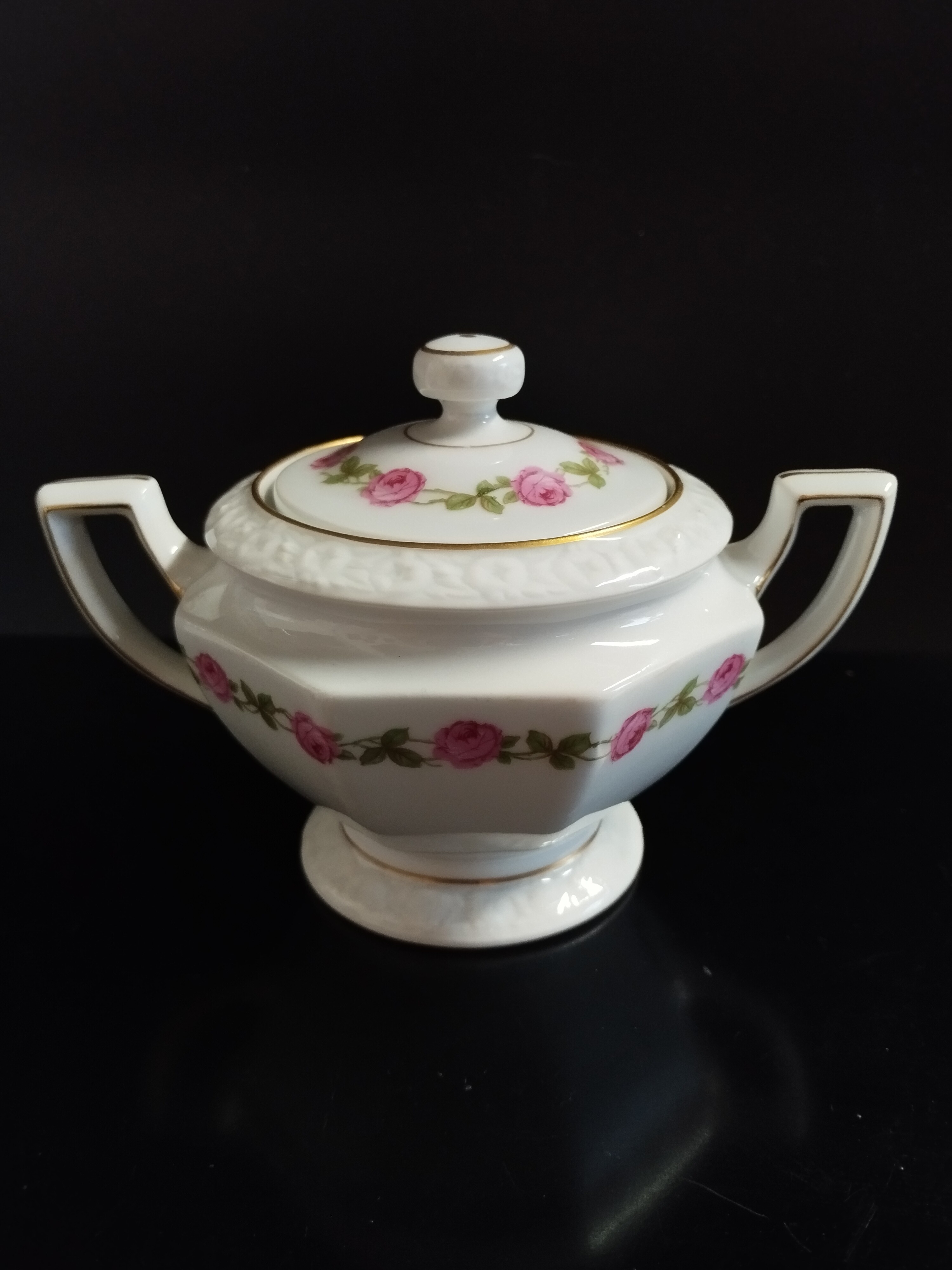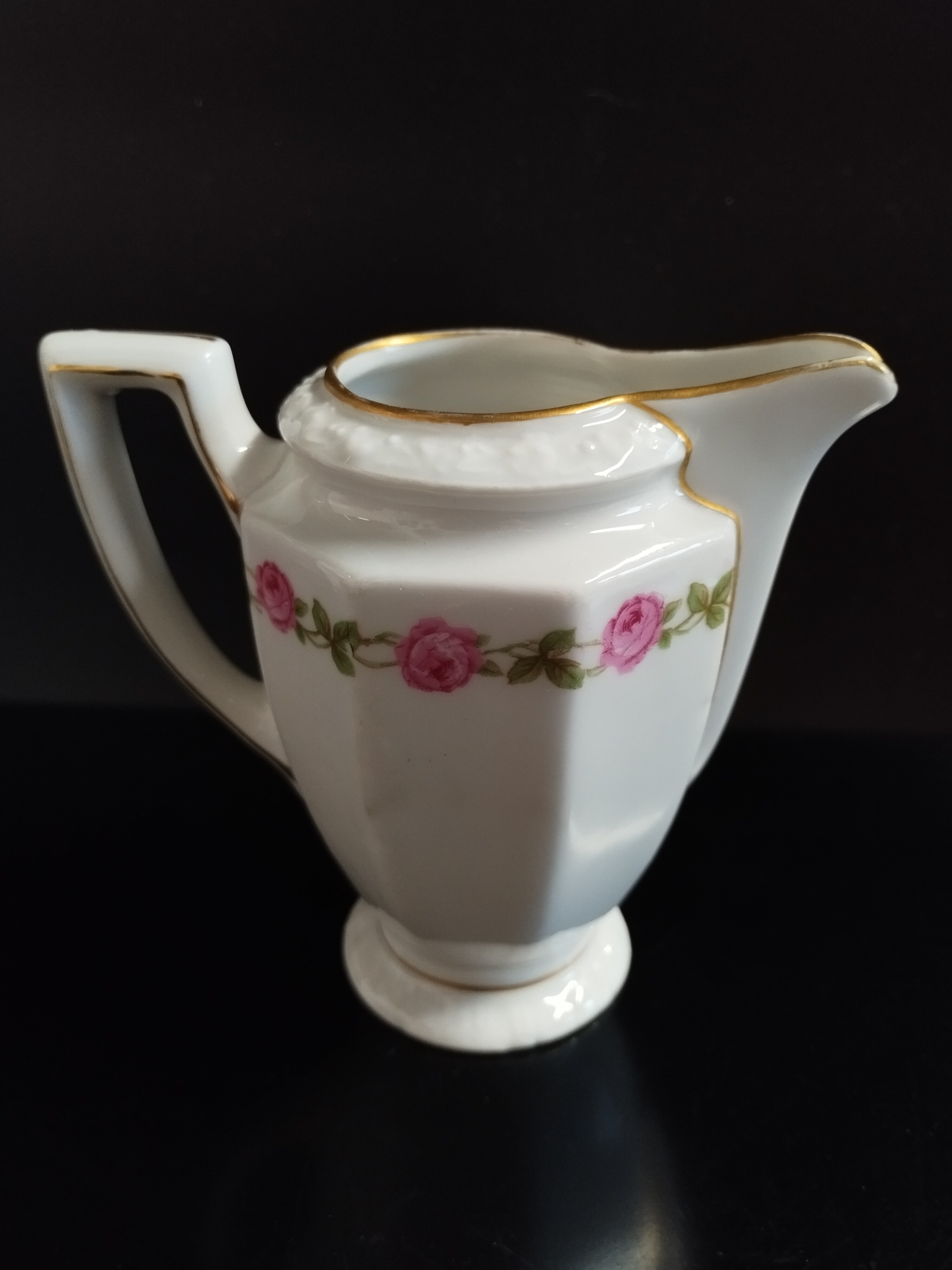 W skład serwisu wchodzą: dzbanek, cukiernica, mlecznik, 2 filiżanki, 6 spodeczków, 8 talerzyków deserowych. Cały zestaw widoczny na zdjęciu.
