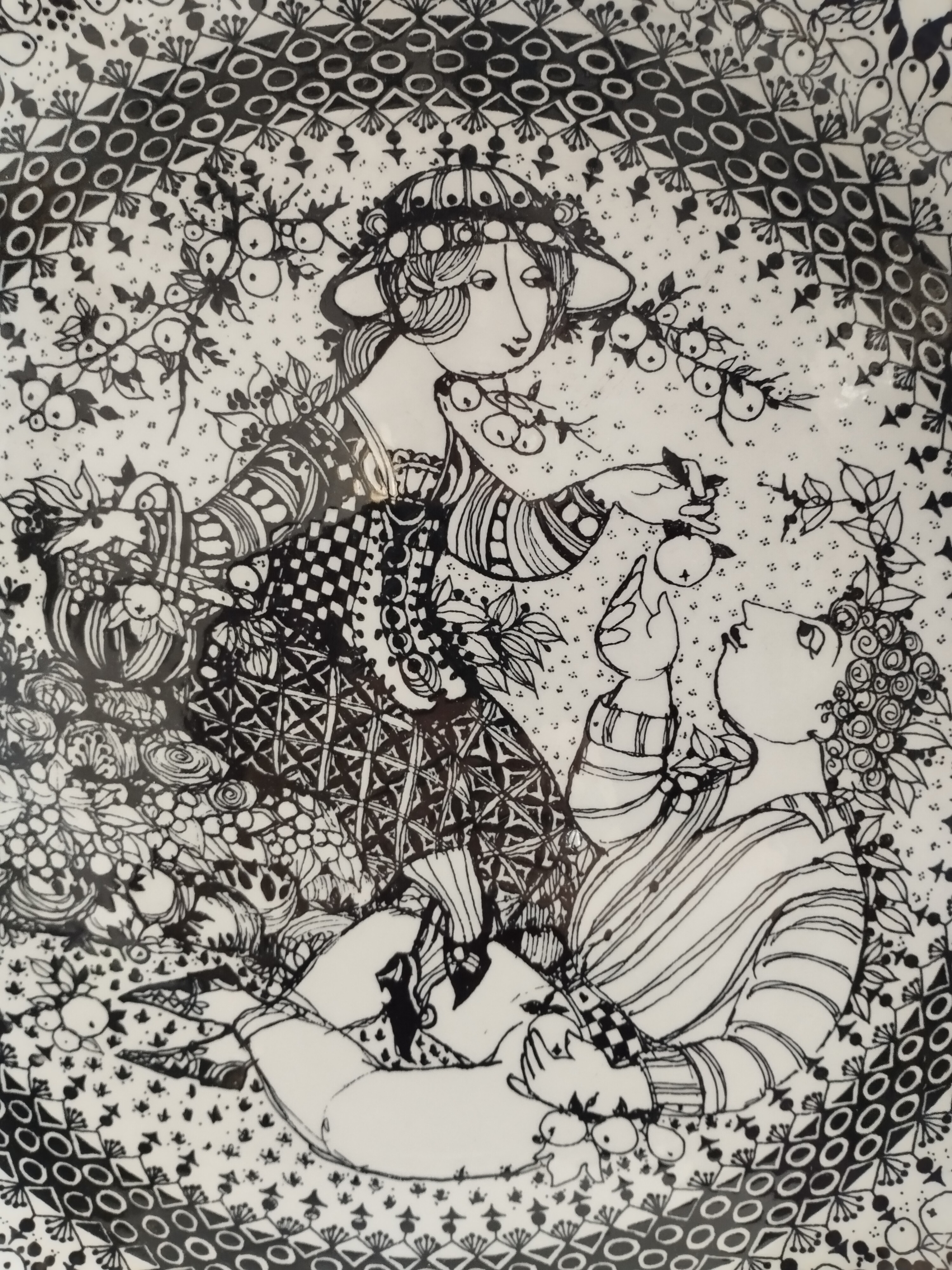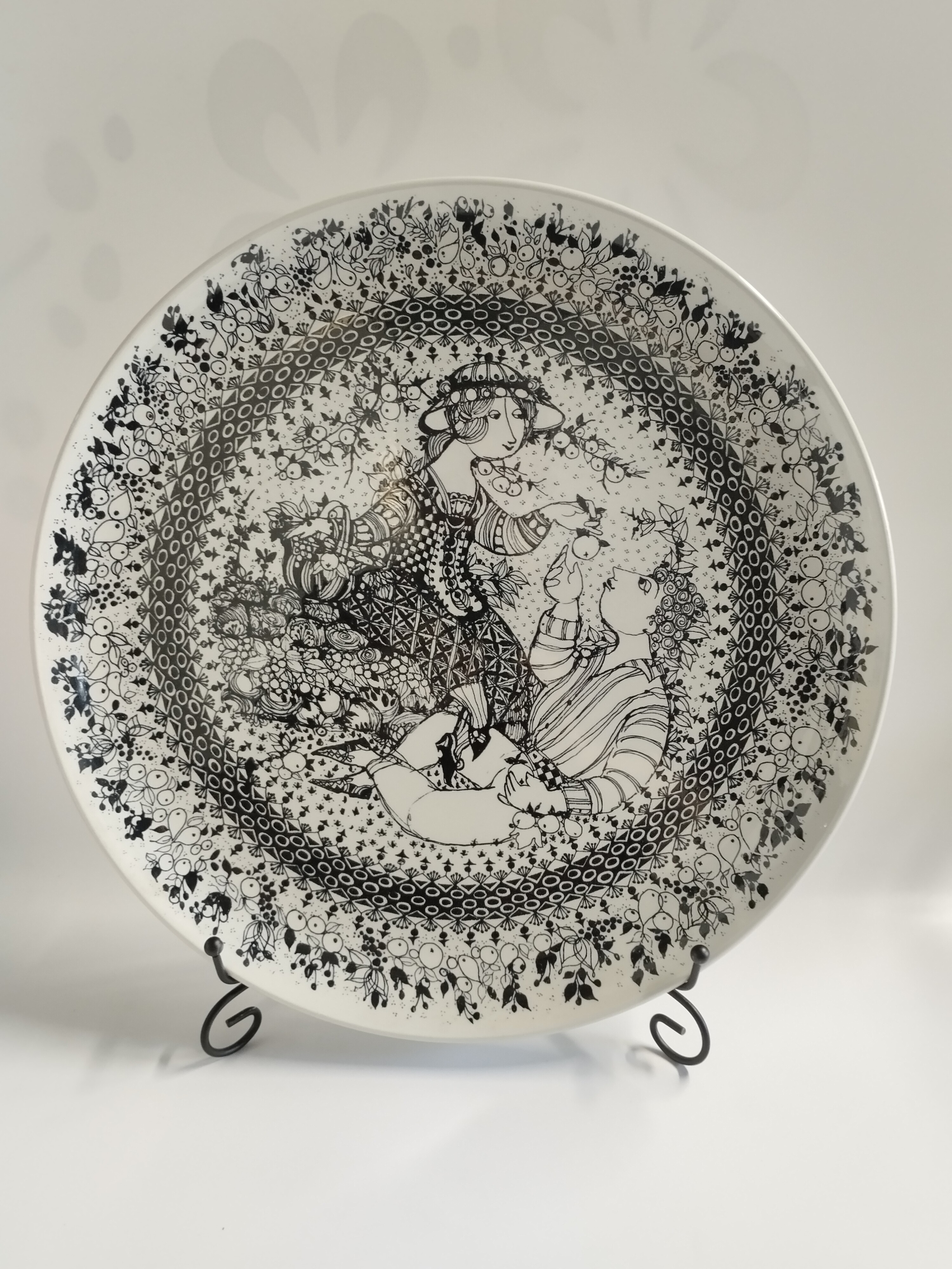 Duża patera ręcznie malowana do powieszenia na ścianę. Porcelana niemiecka.