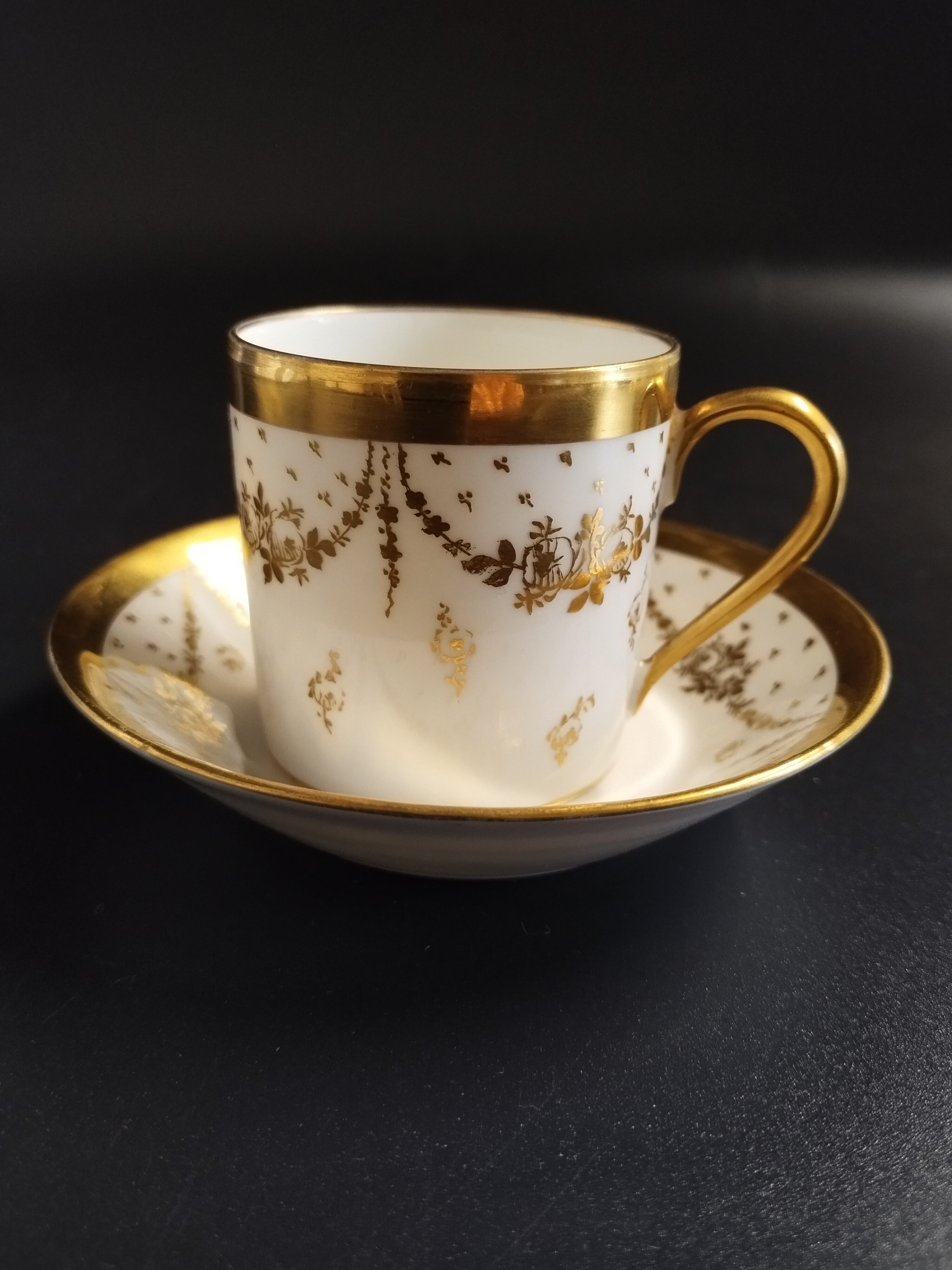 Filiżanka porcelanowa zdobiona złoceniami. Limoges, Francja.