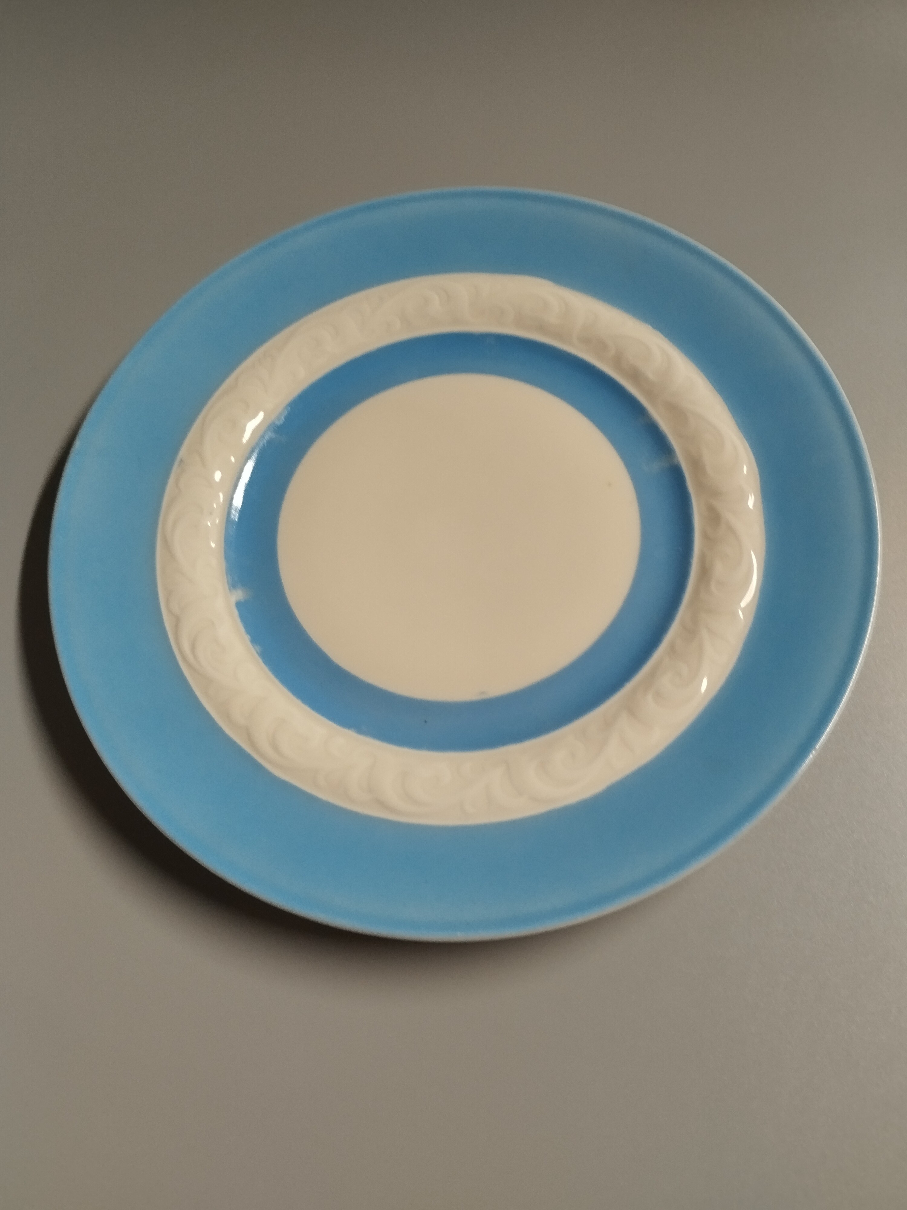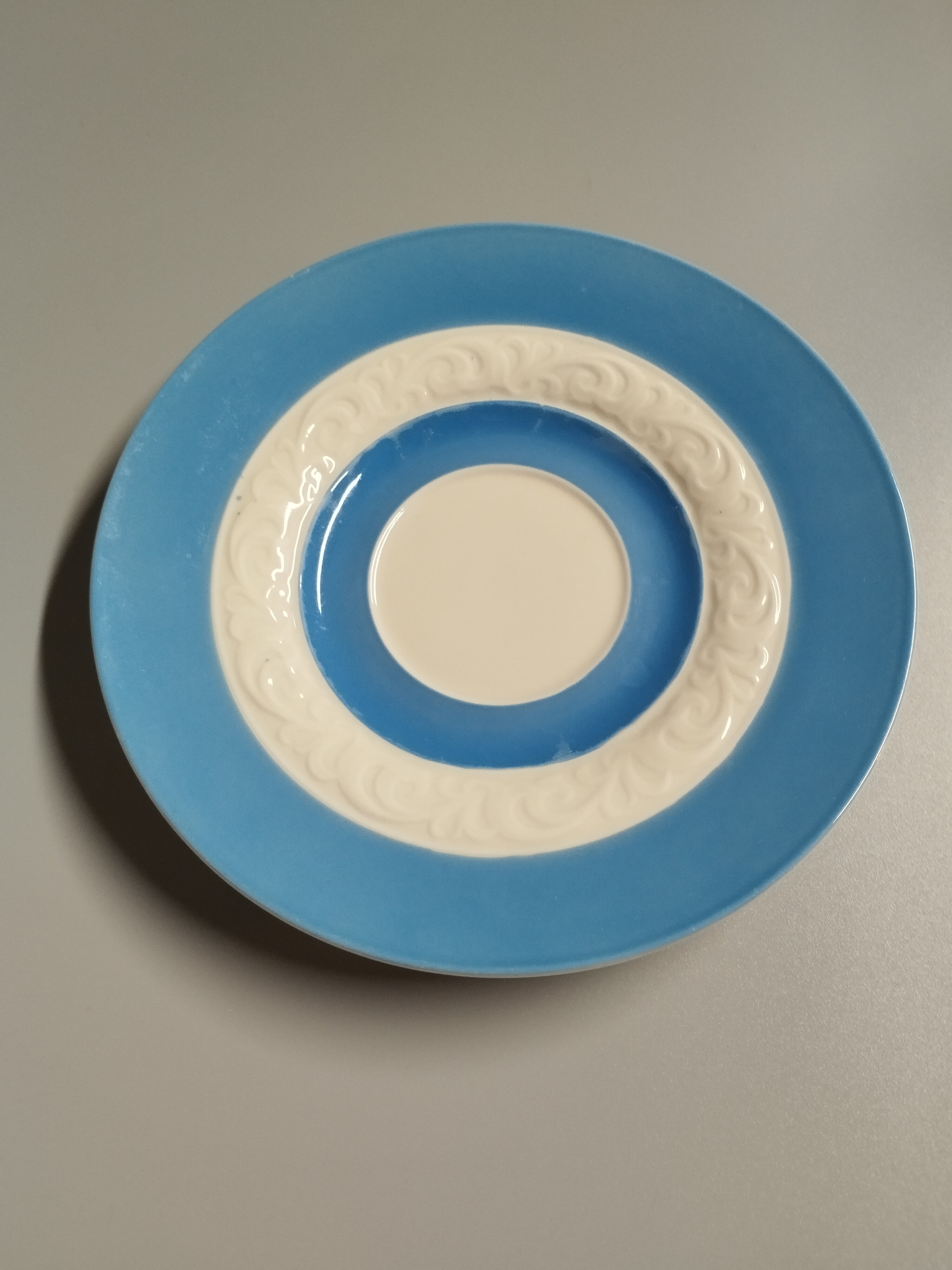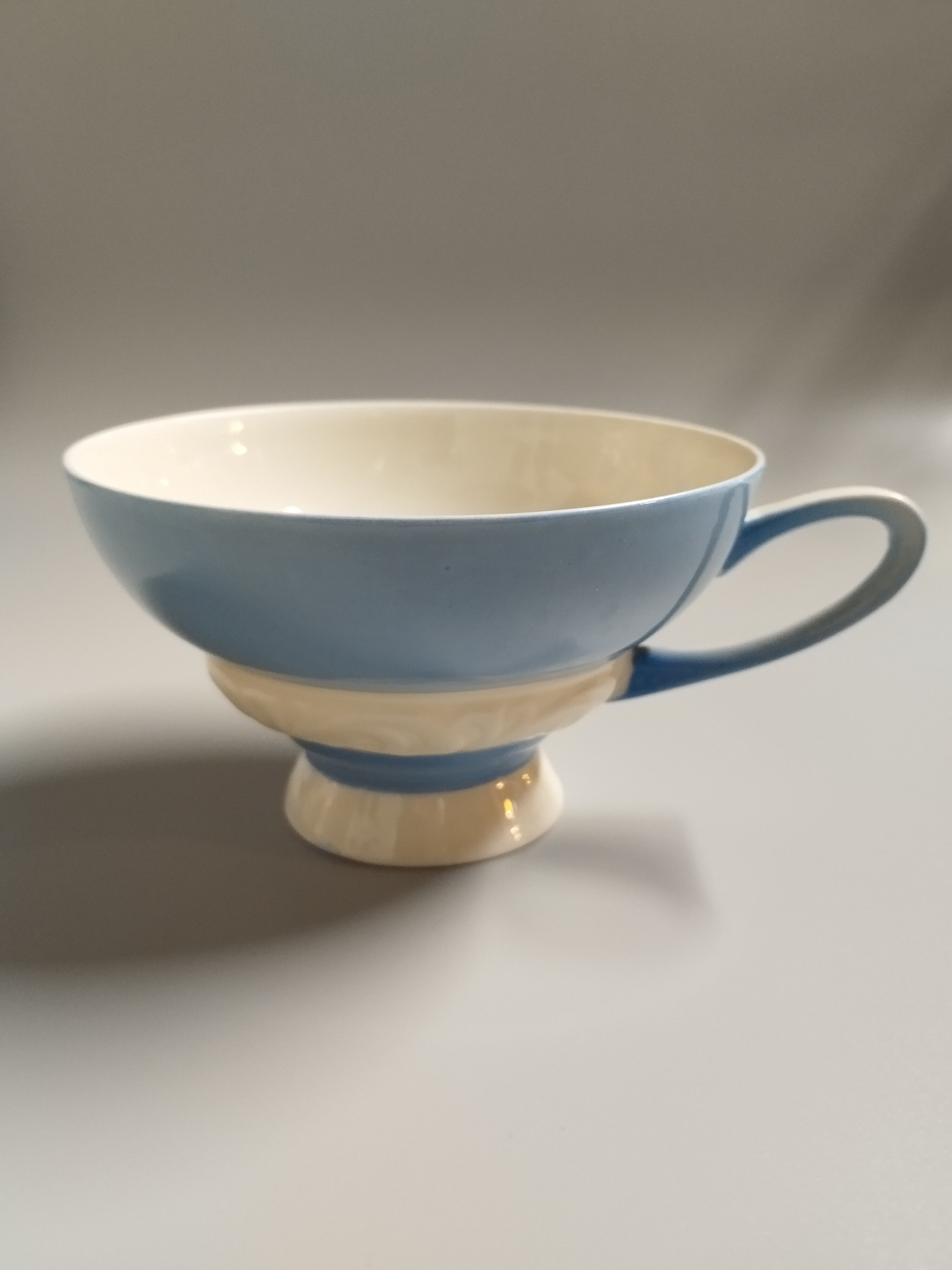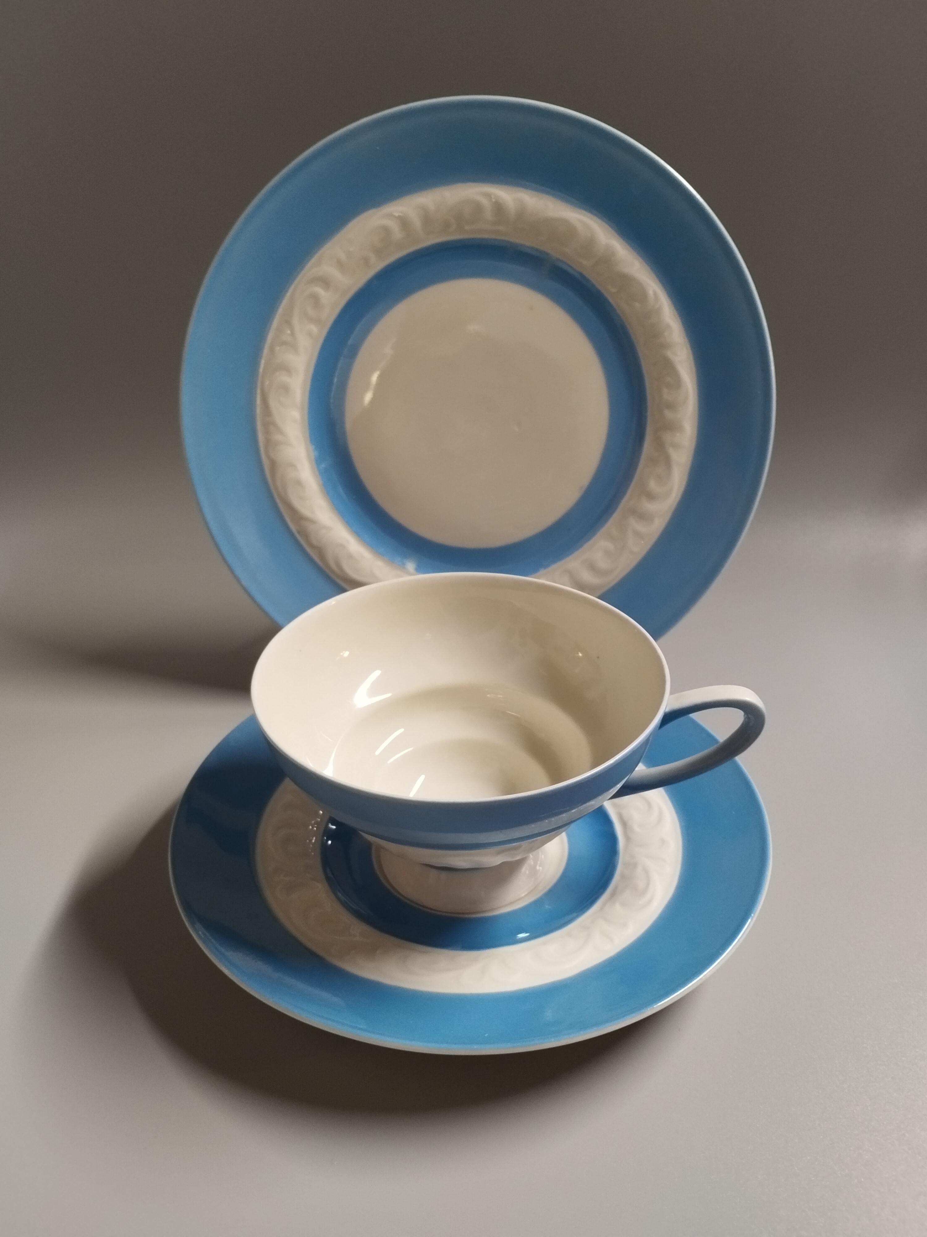 Zestaw porcelany śniadaniowej dla 1 osoby z dużą filiżanką herbacianą. Są niewielkie przetarcia na talerzyku deserowym. Firma Hädrich & Sohn Reichenbach. Niemcy, Turyngia.