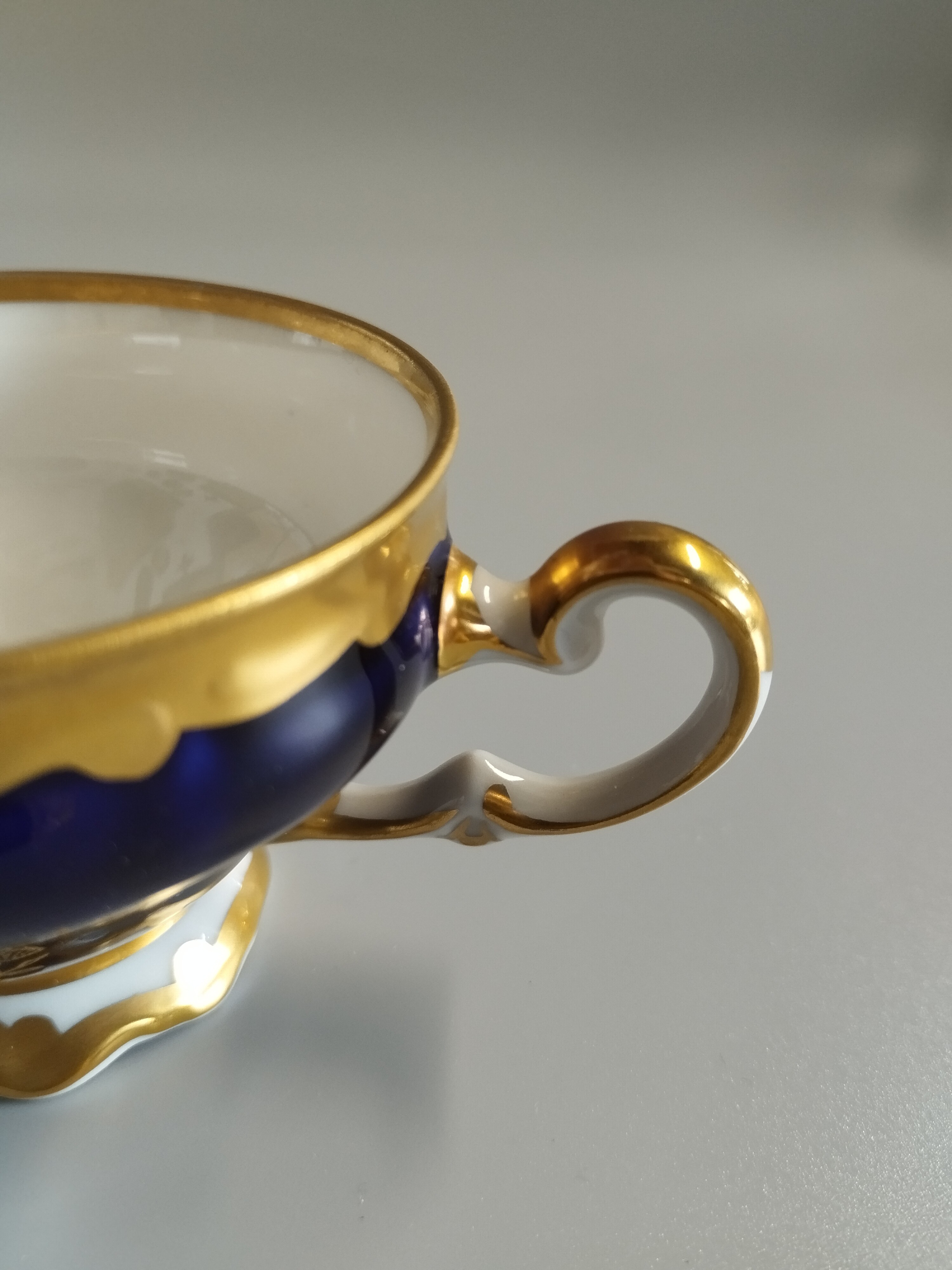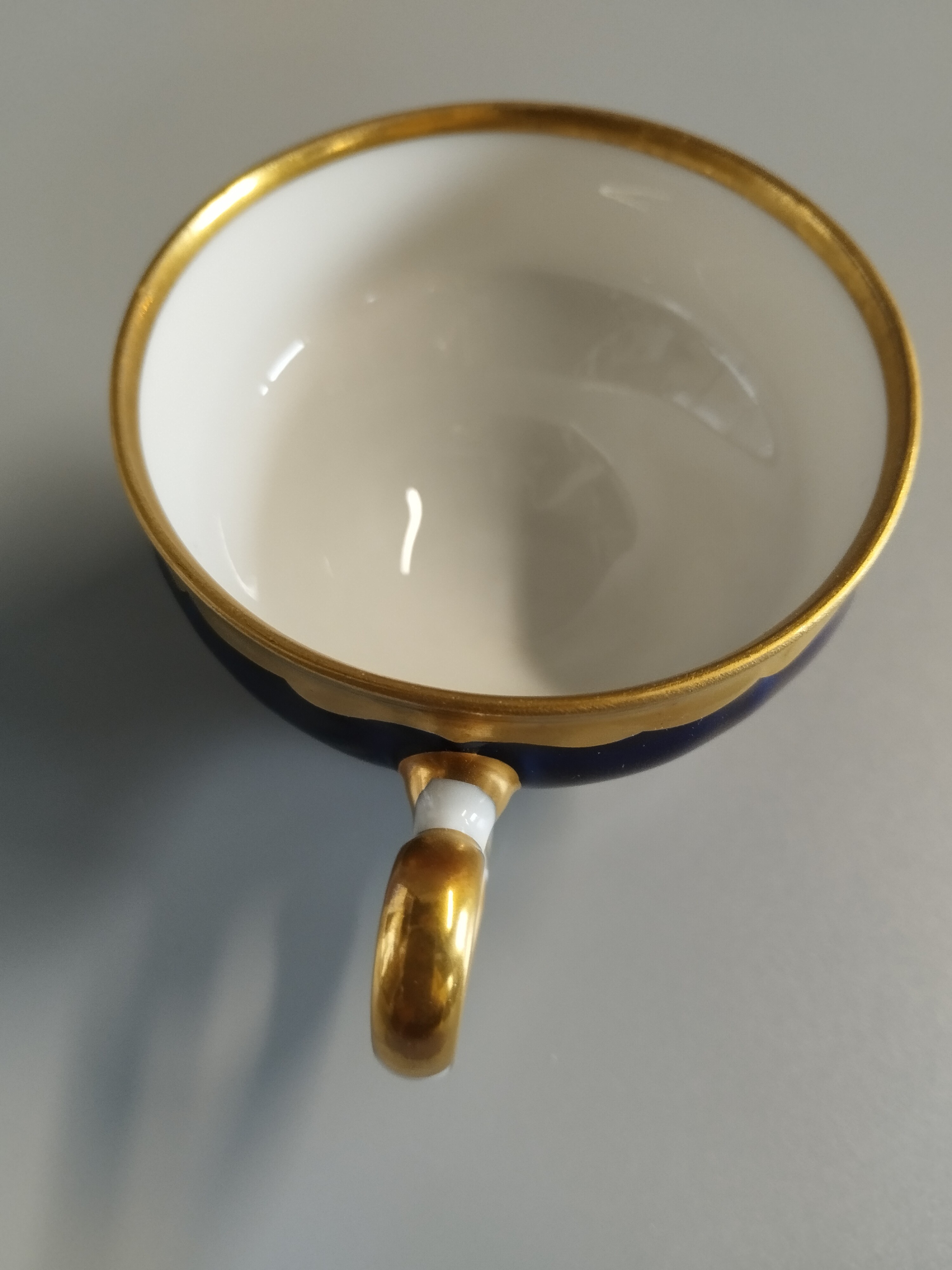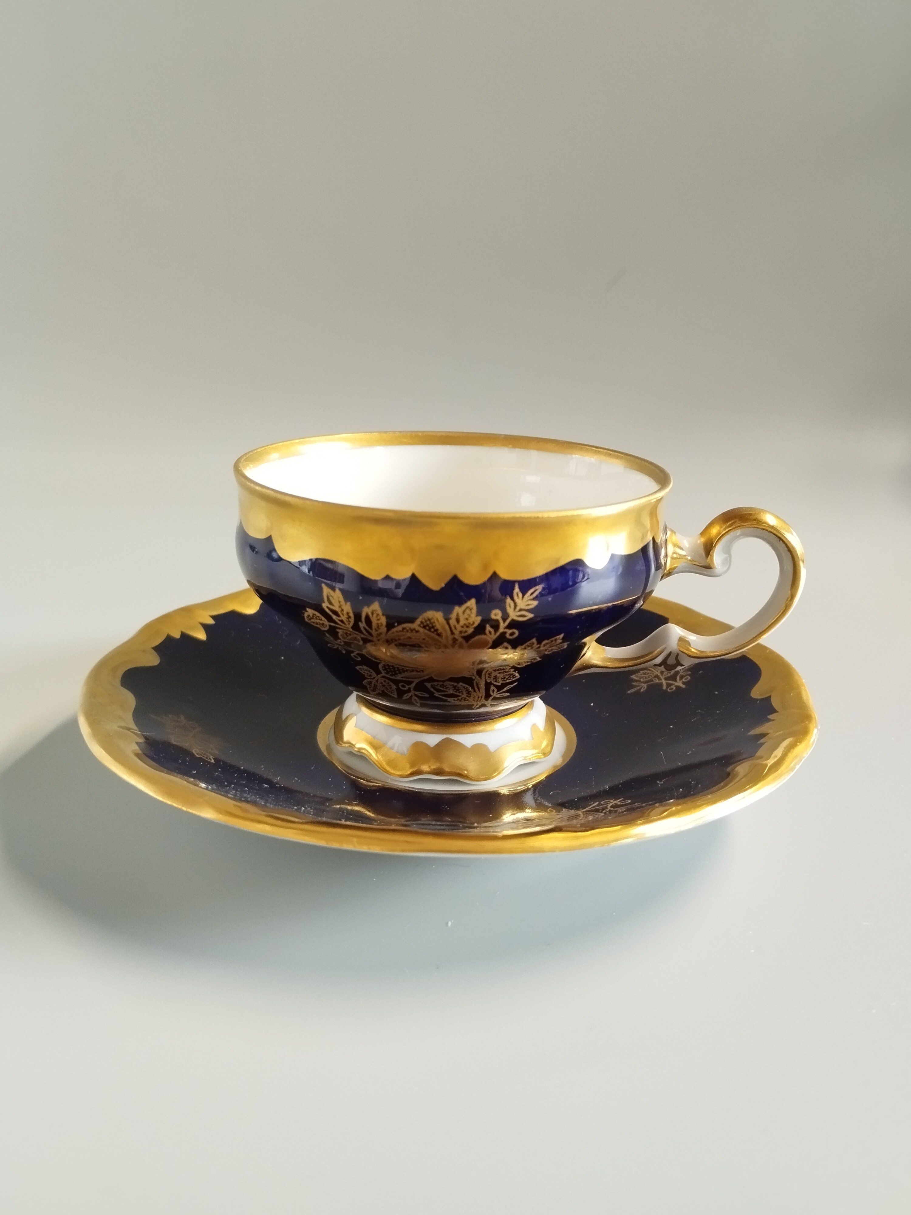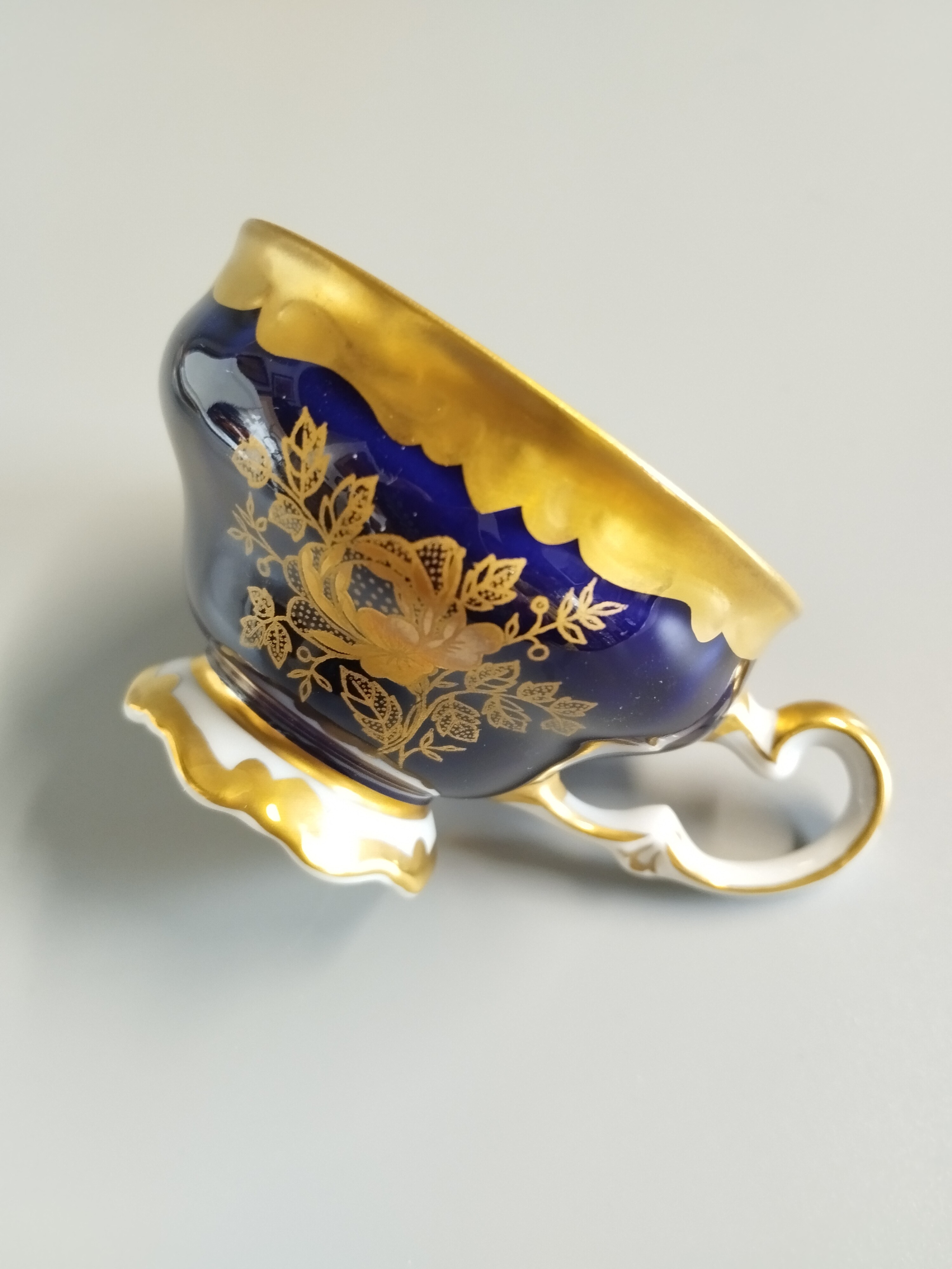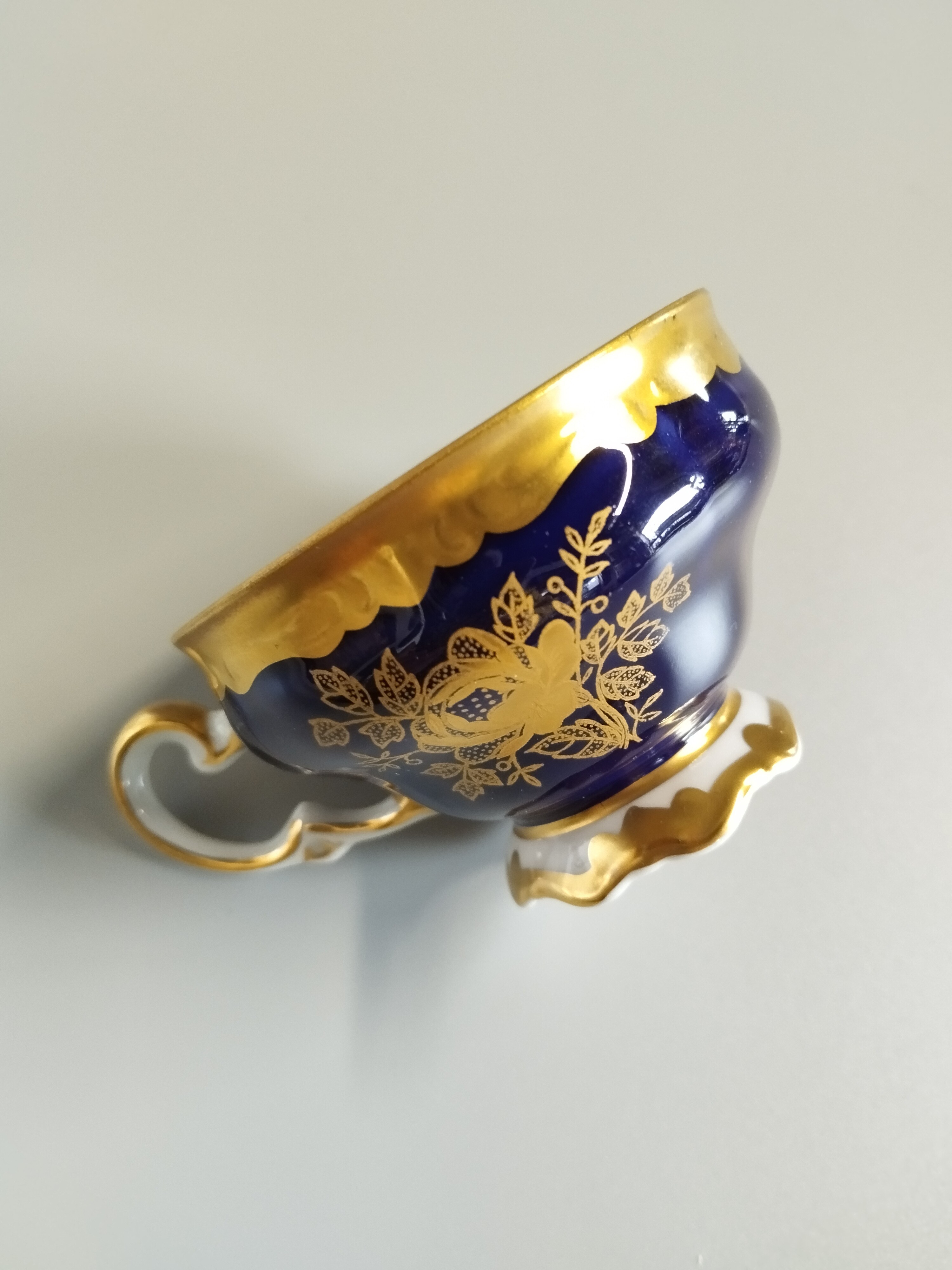 Filiżanka kolekcjonerska kobaltowa pokryta złoconym motywem. Firma Weimar, Germany.