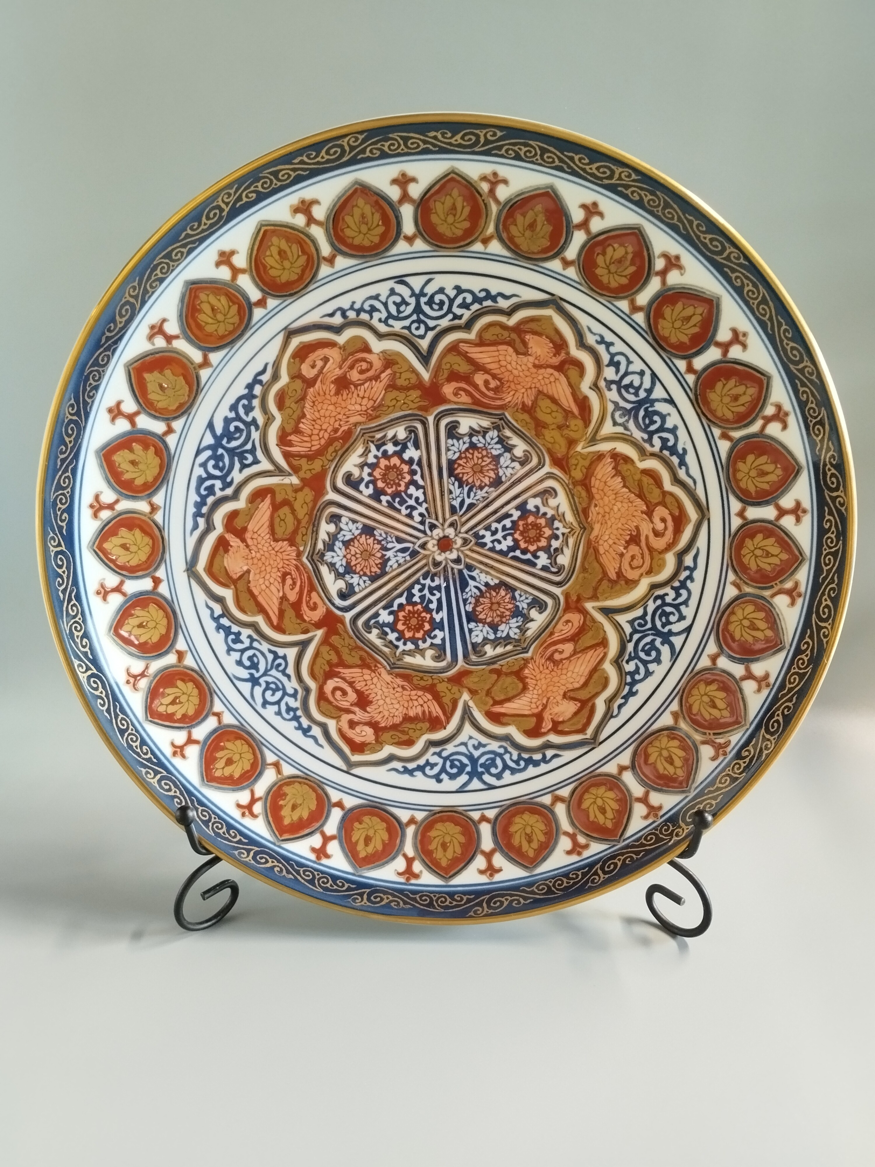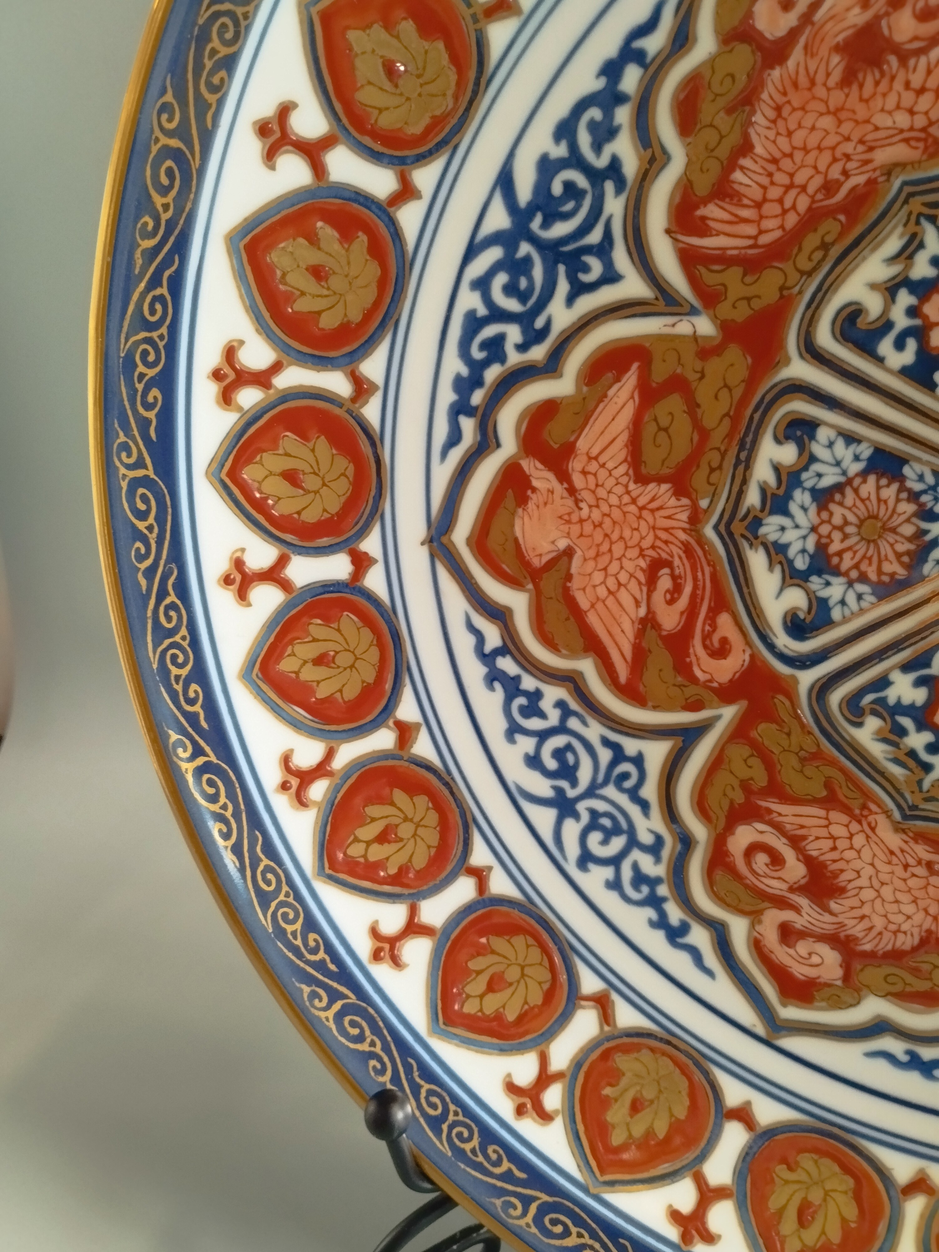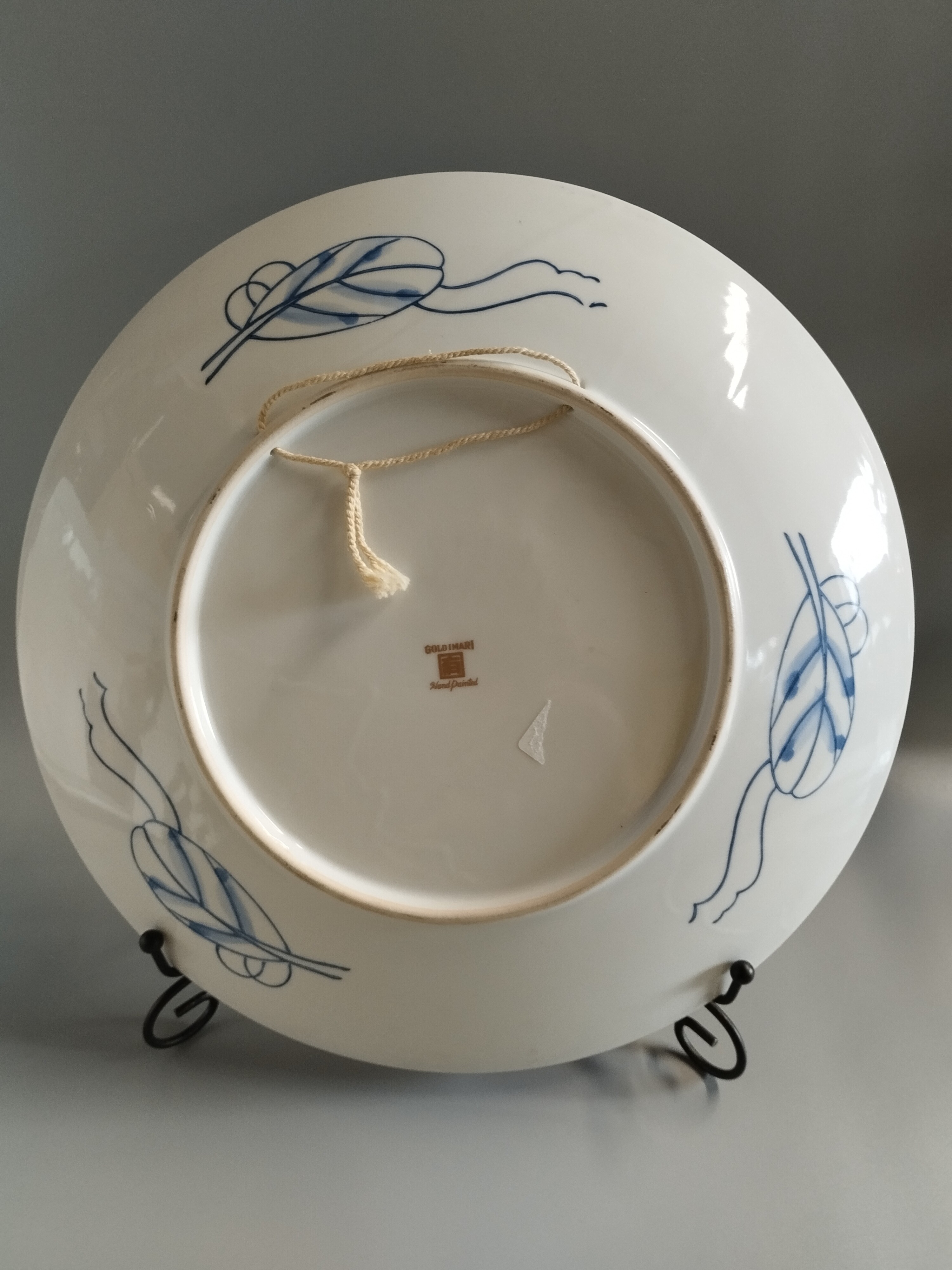 Duża ozdobna patera ręcznie malowana z zaczepem do powieszenia na ścianie. Firma Gold Imari, Japonia.