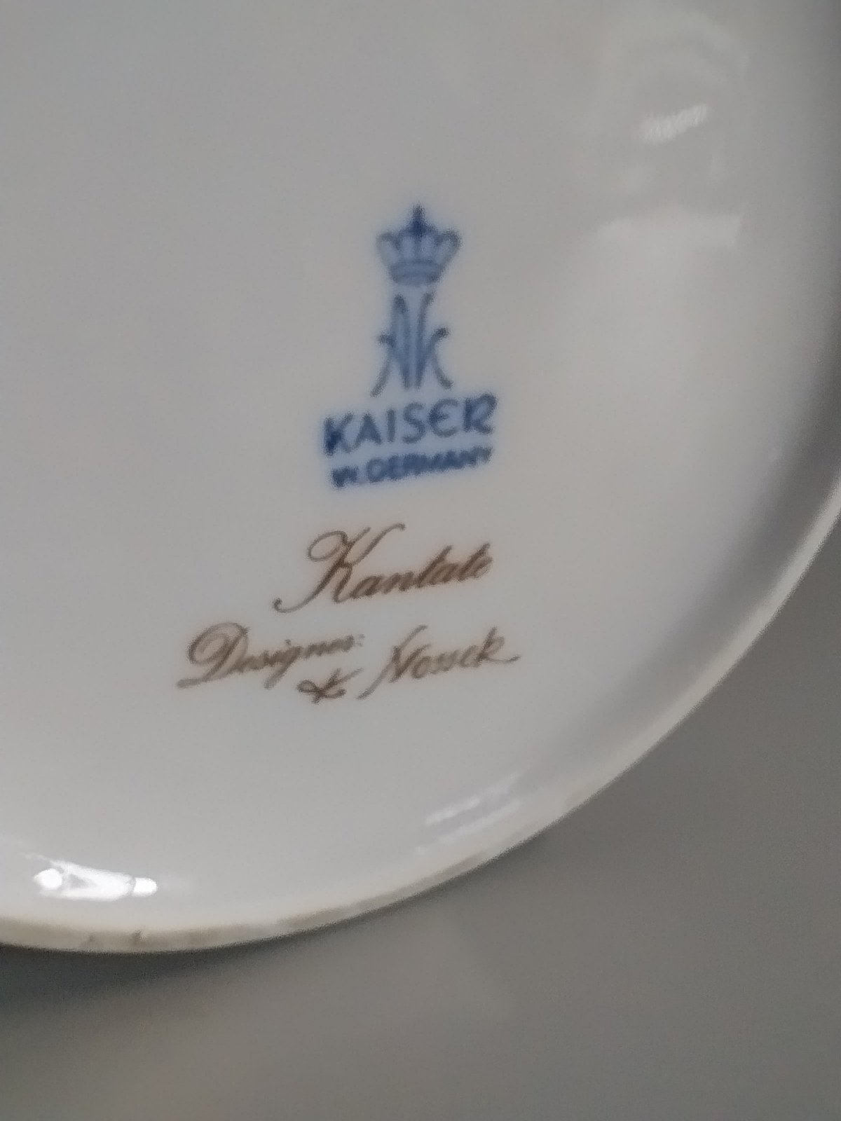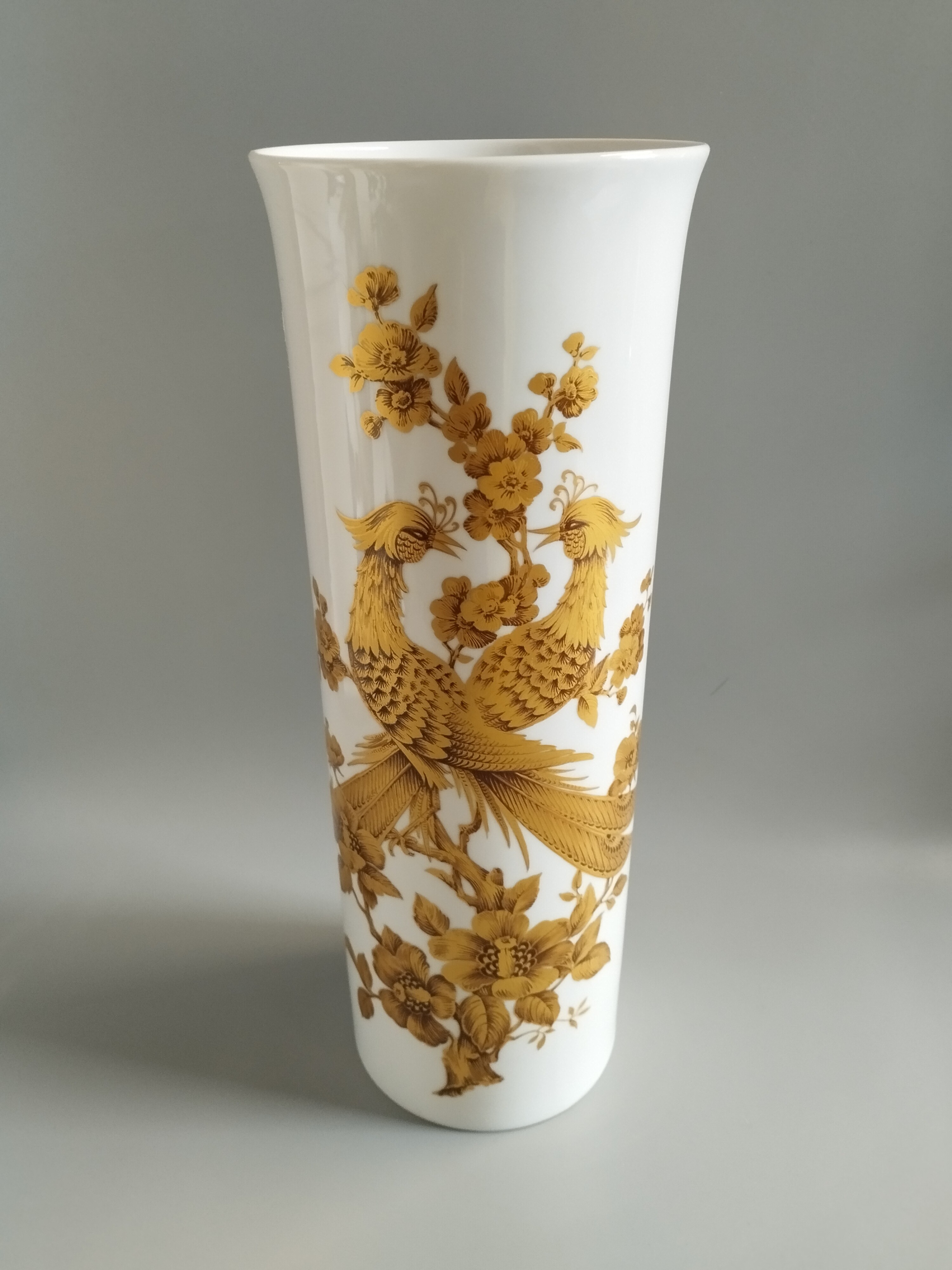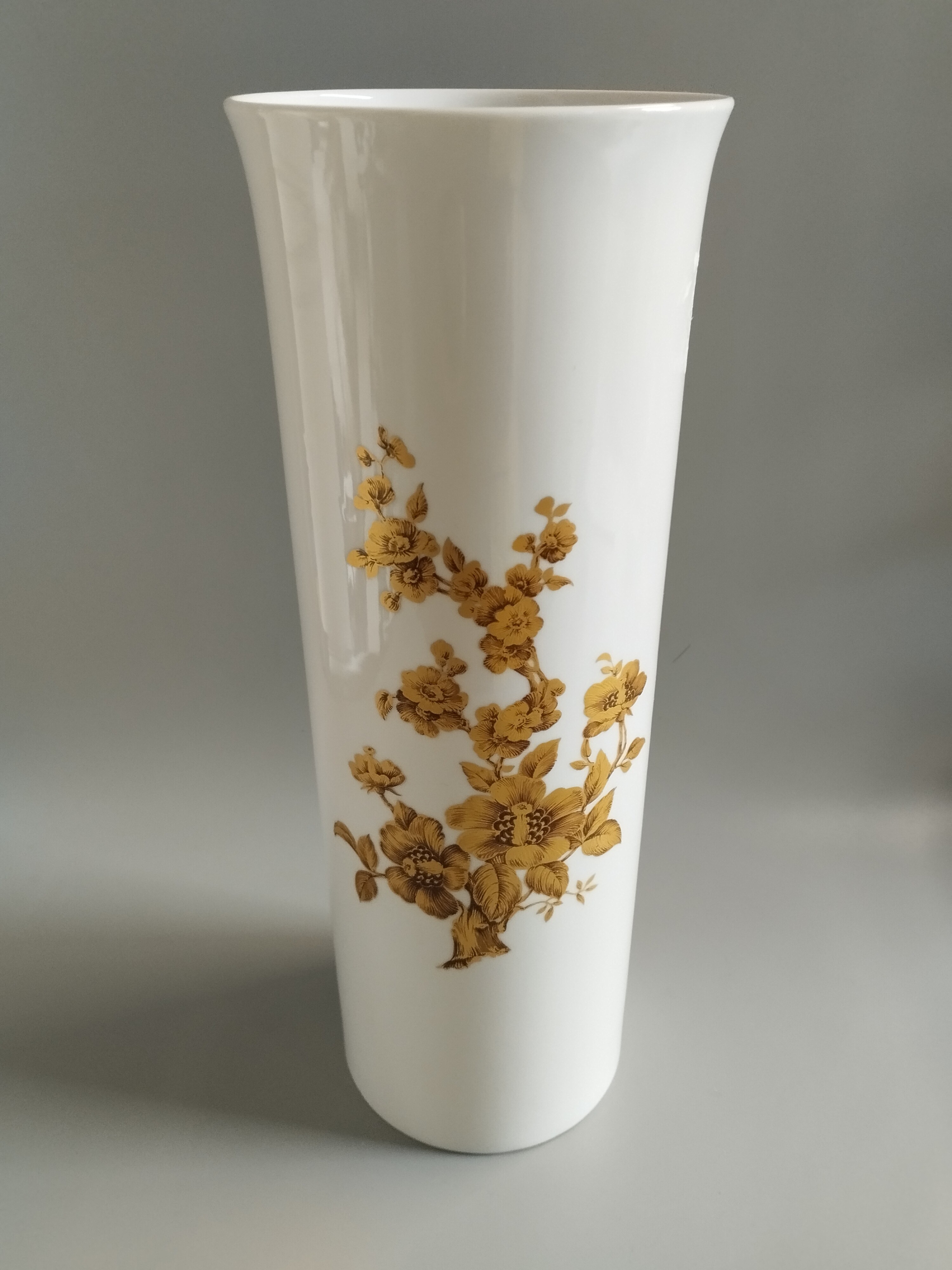 Wysoki wazon porcelanowy zdobiony złotym motywem. Projekt: K. Nossek. Firma Kaiser, Niemcy.