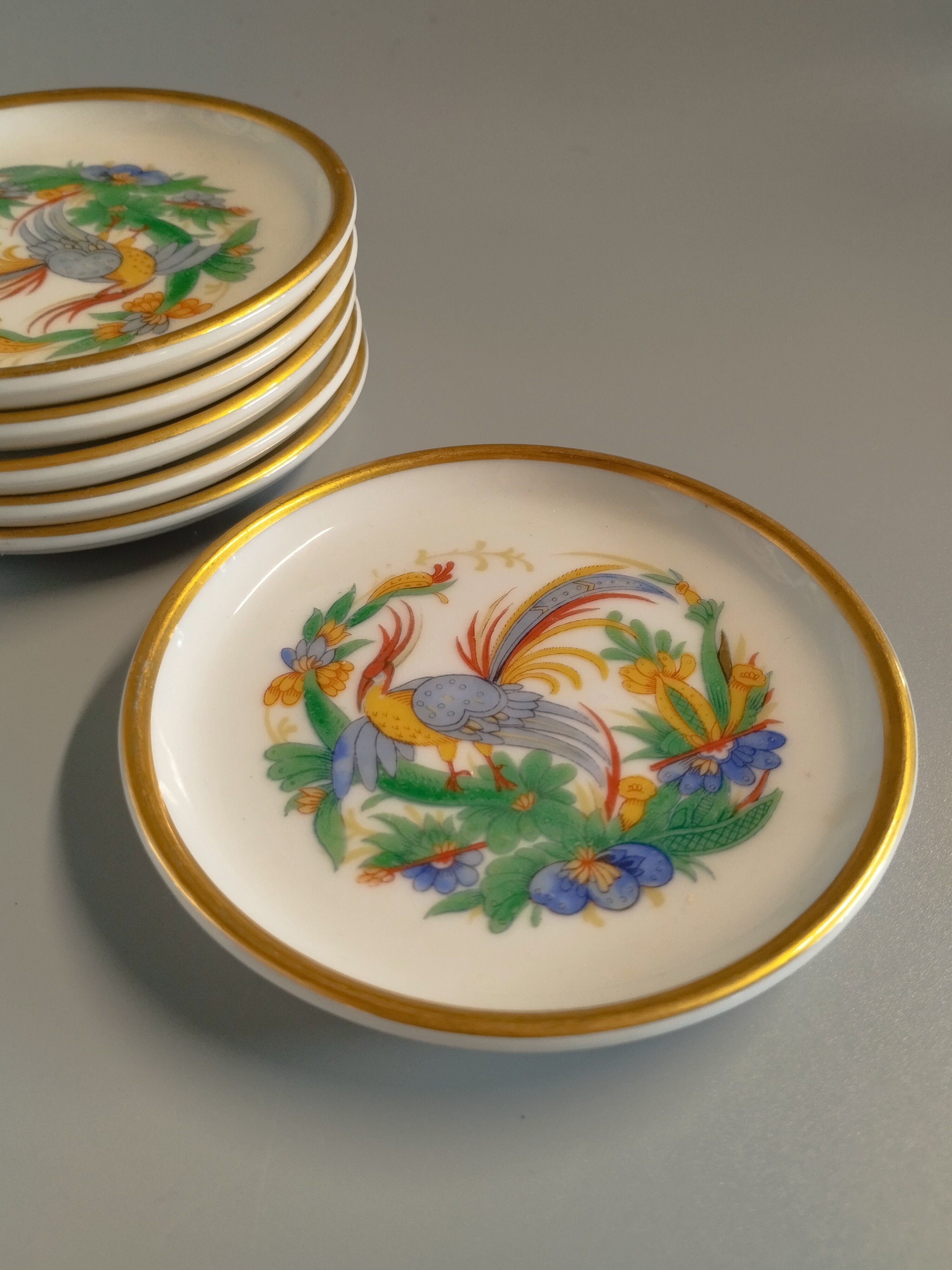 Komplet talerzyków do konfitur z motywem Rajskiego Ptaka. Początek XX wieku.