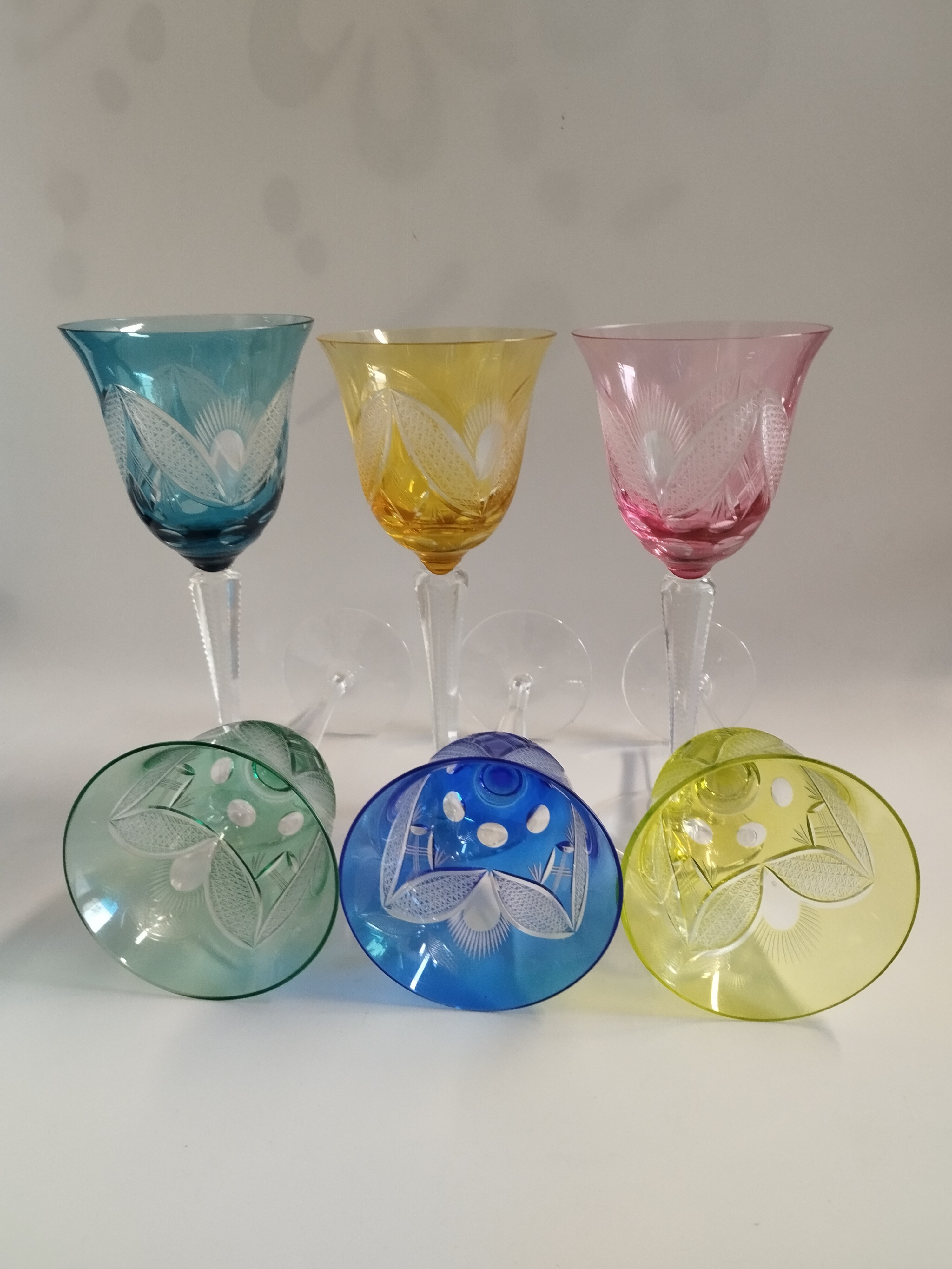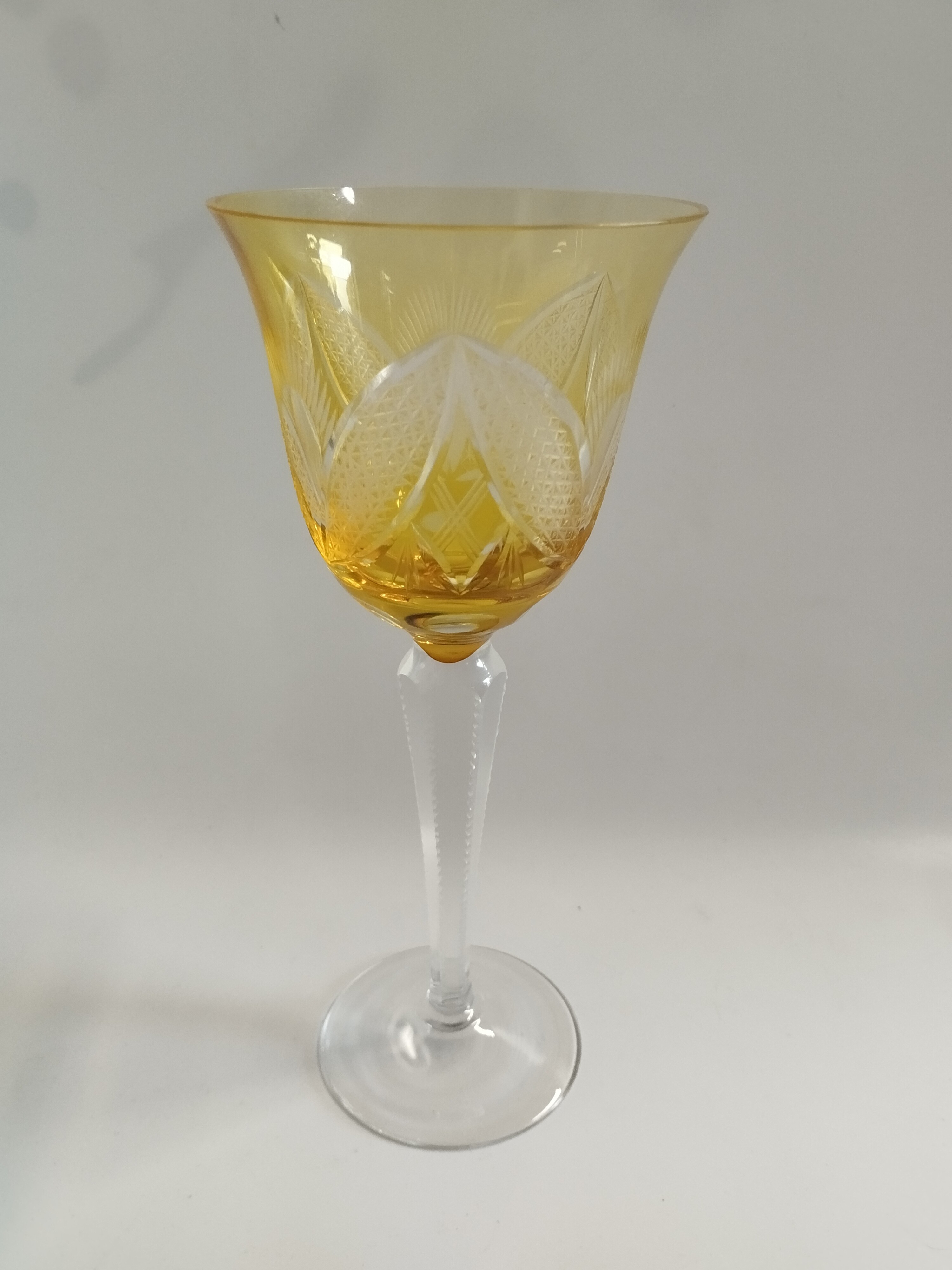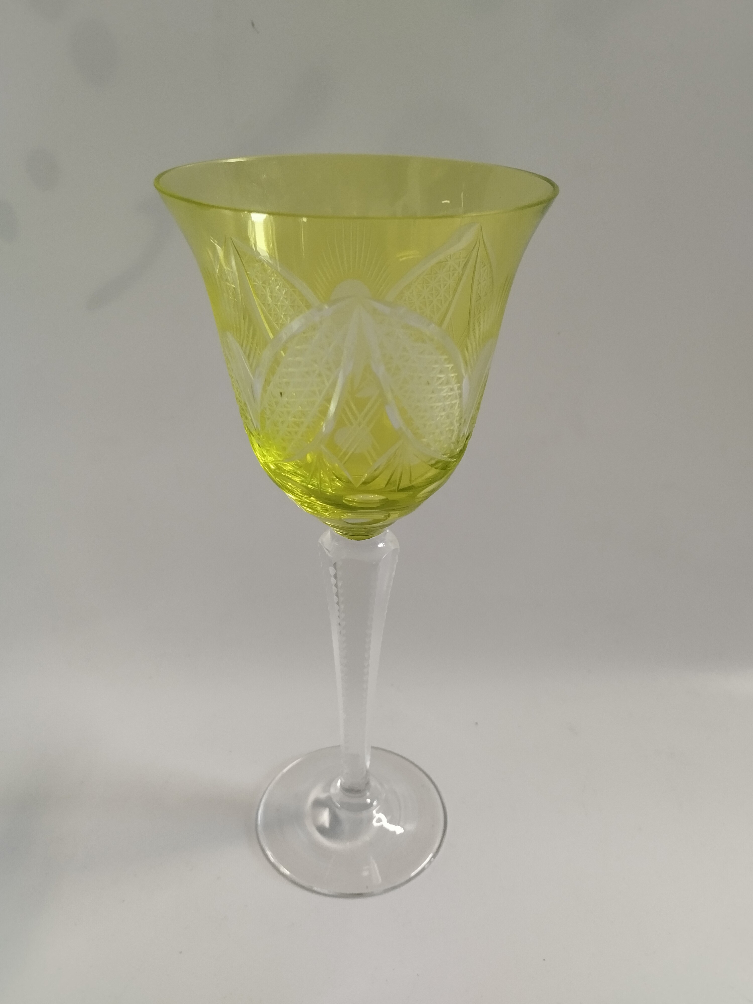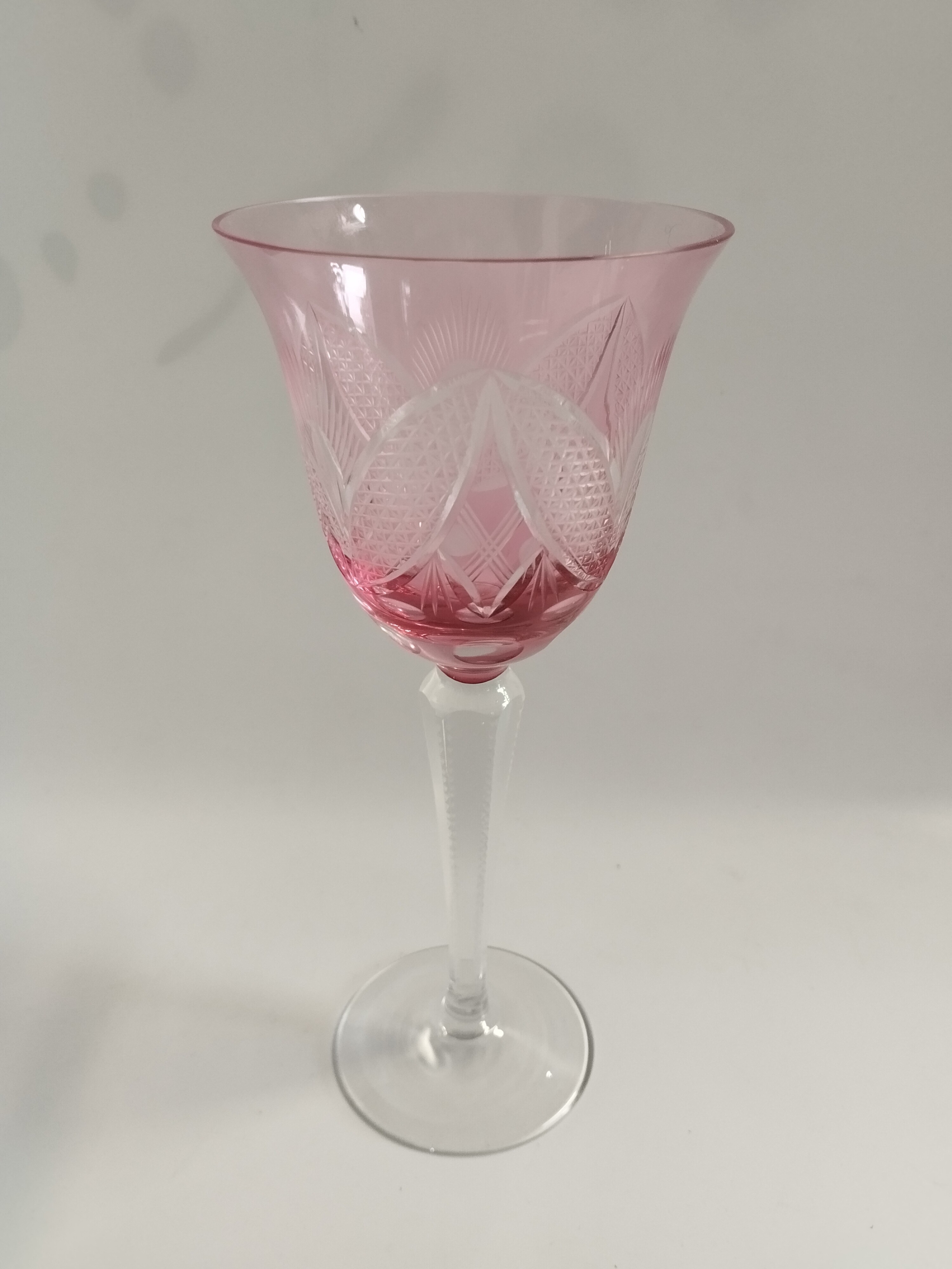 Komplet kieliszków do wina. W zestawie jest 6 sztuk, w tym 1 szt ma delikatne uszczerbienie widoczne na zdjęciu. Pozostałe są w stanie idealnym.
