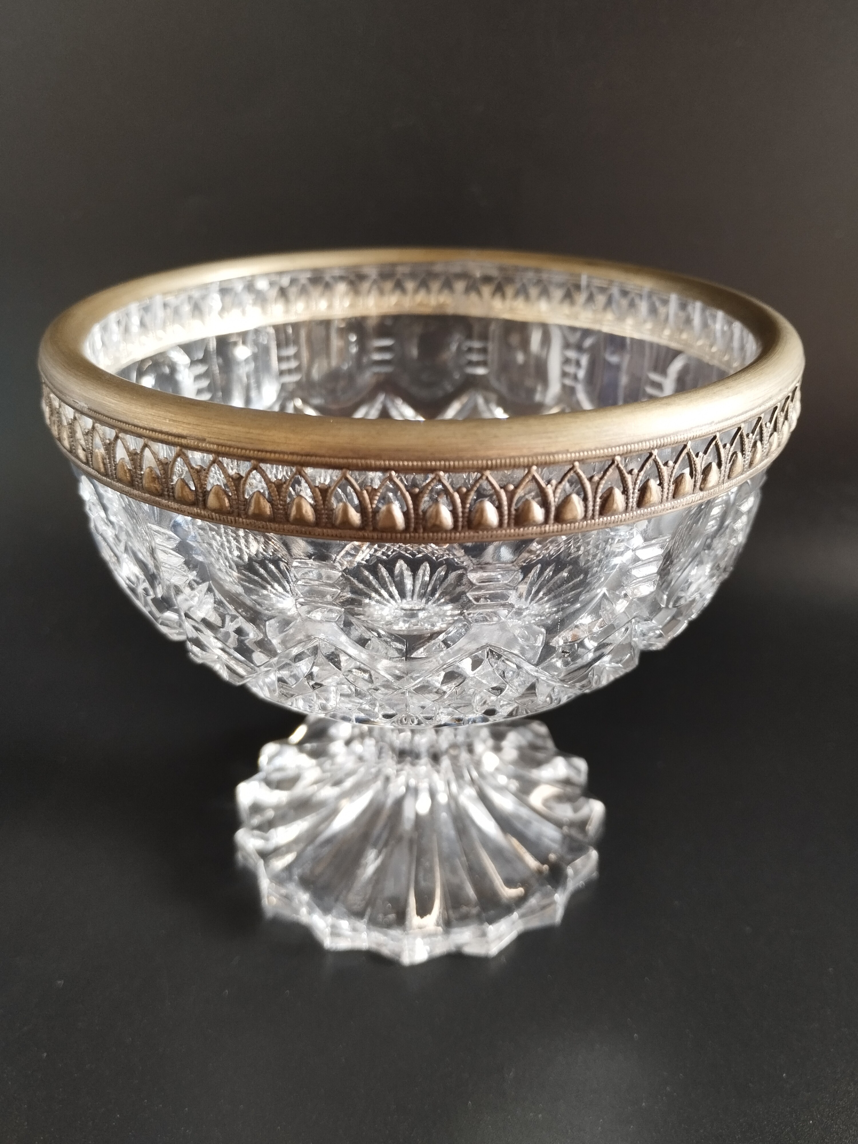 Kryształowe pucharki do deserów zdobione srebrną, ażurową obręczą. Cena za 1 szt. Posiadamy 6 sztuk.