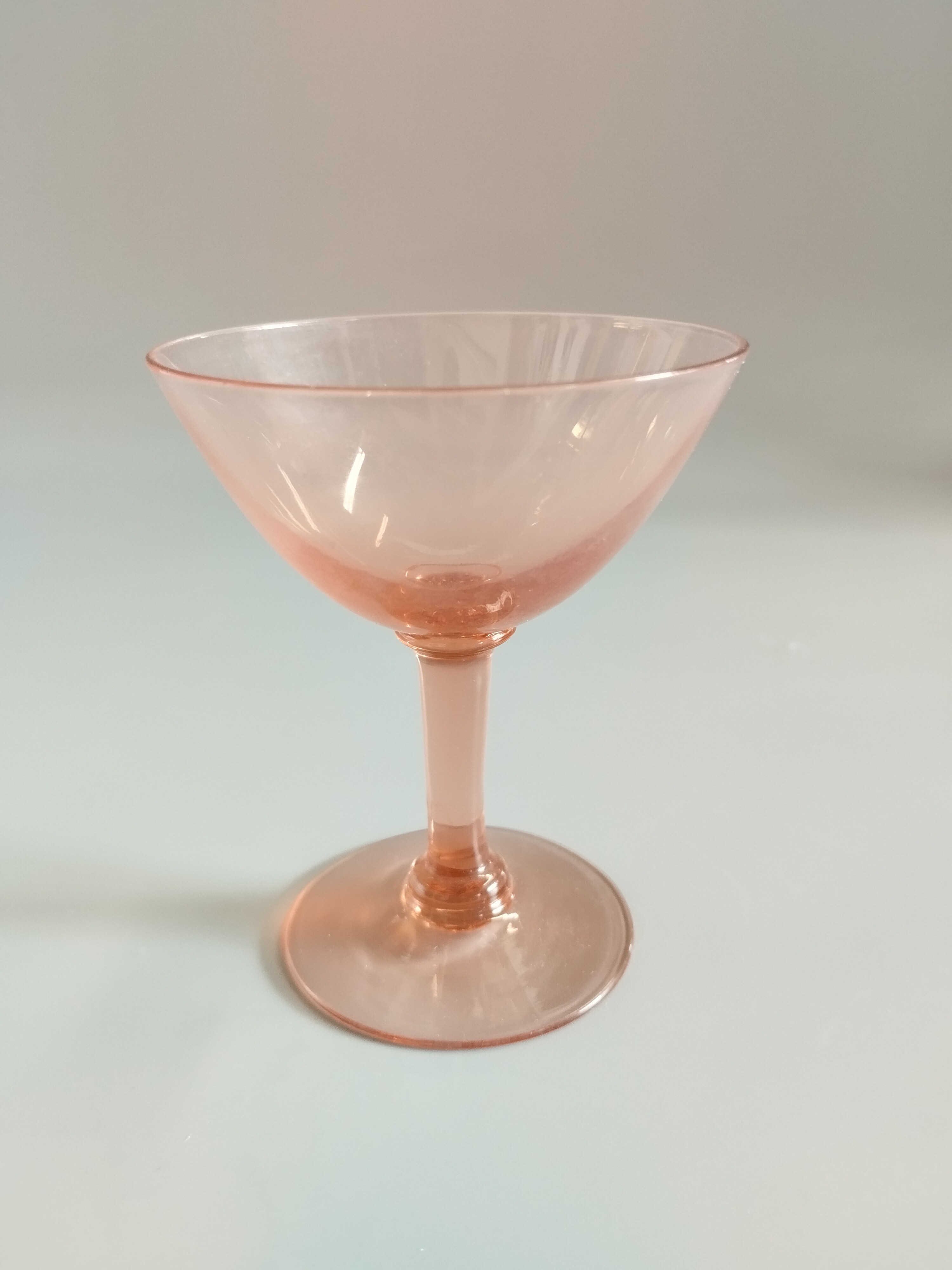 Kieliszki szklane w kolorze rozalinowym. Cena za 1 sztukę.