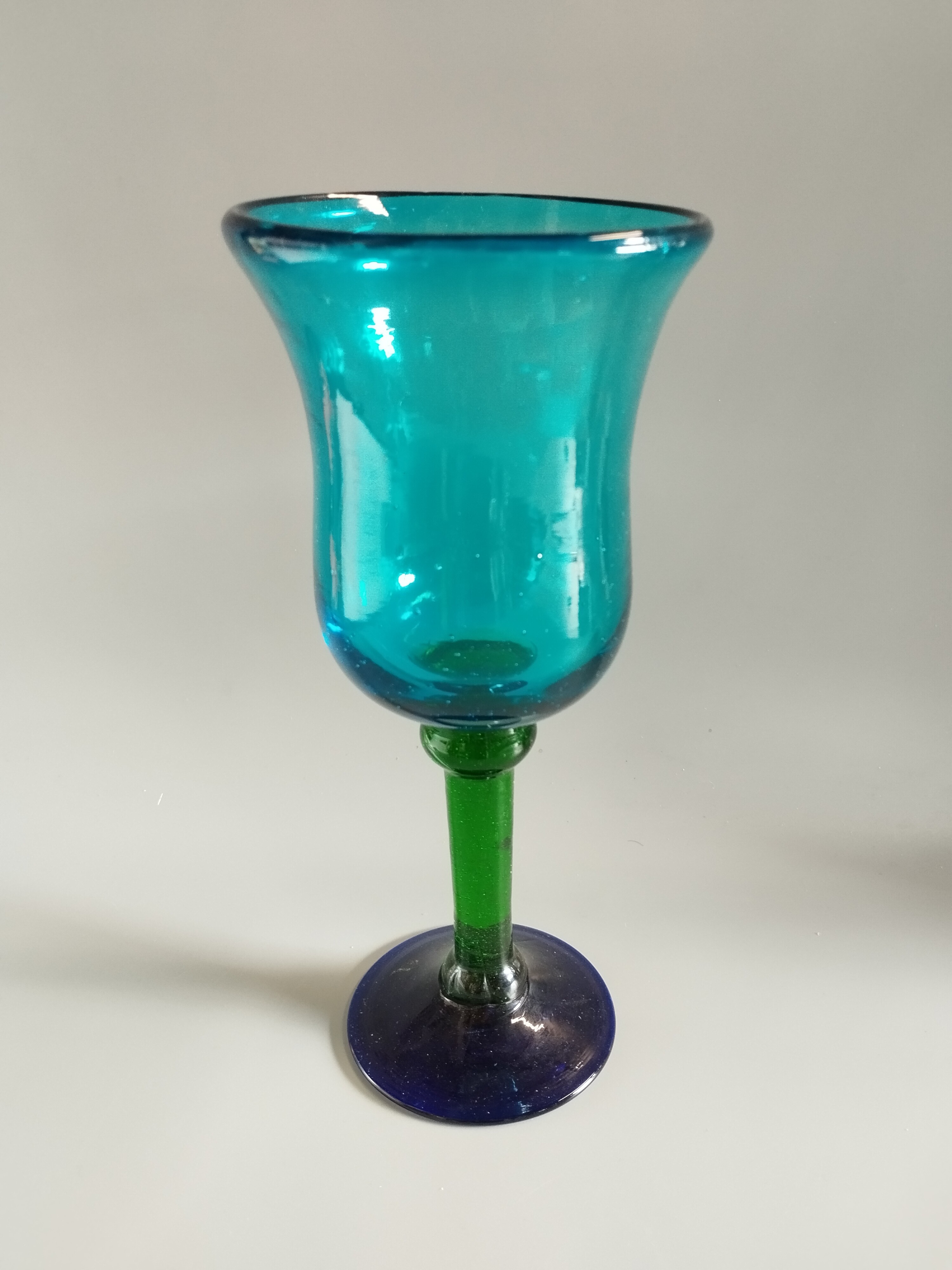 Kielich trójkolorowy z grubego szkła. Idealny do dekoracji wnętrza. Może służyć jako świecznik lub wazonik.