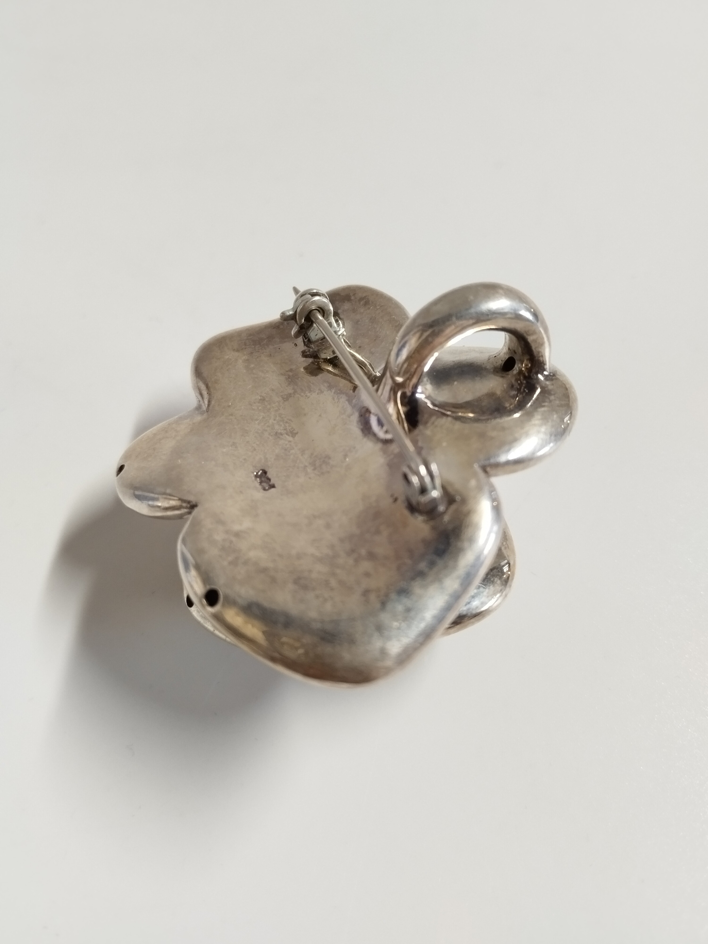 Broszko-wisiorek wykonany ze srebra oksydowanego najwyższej próby. Lata 80-te XX wieku.