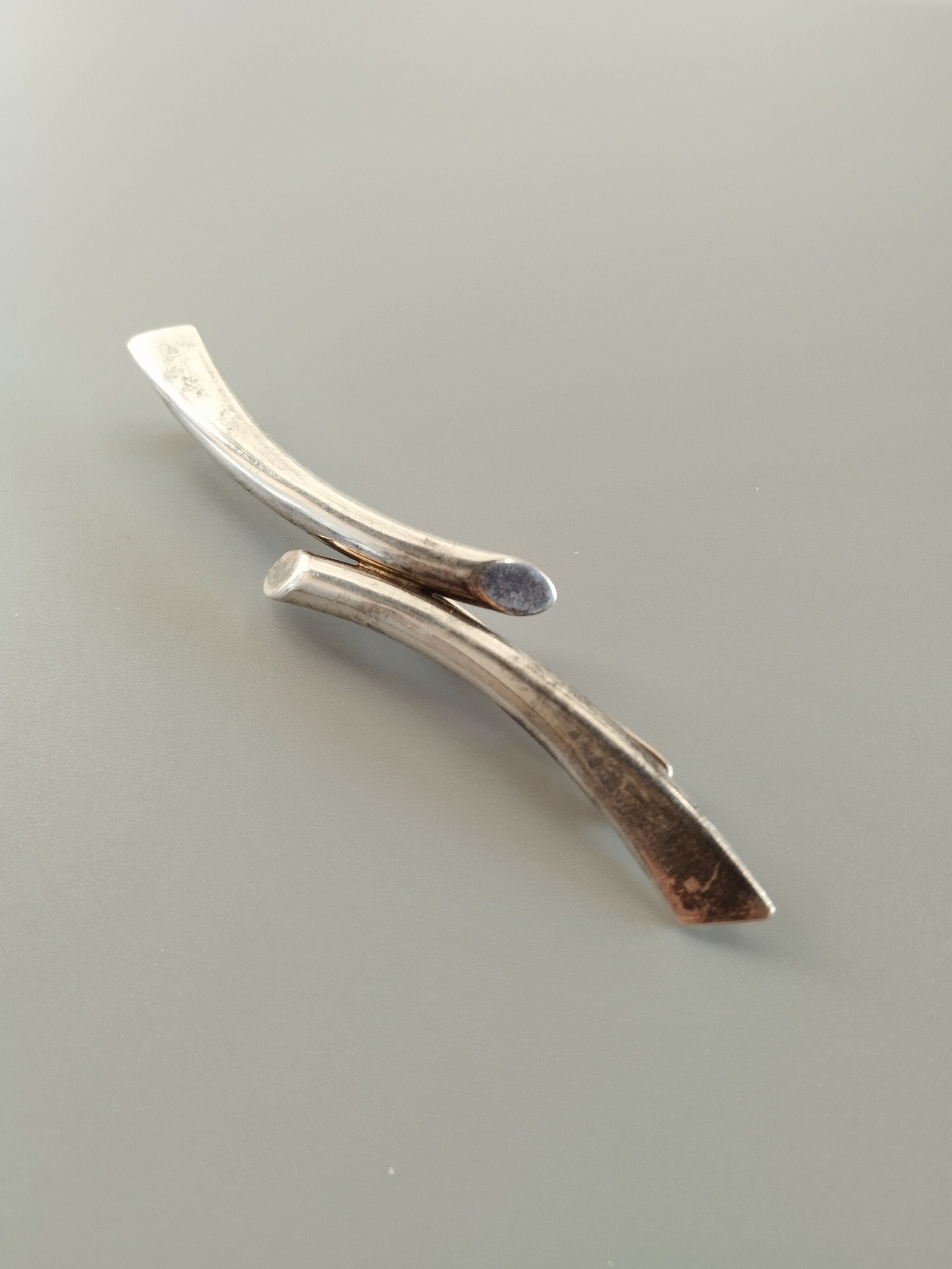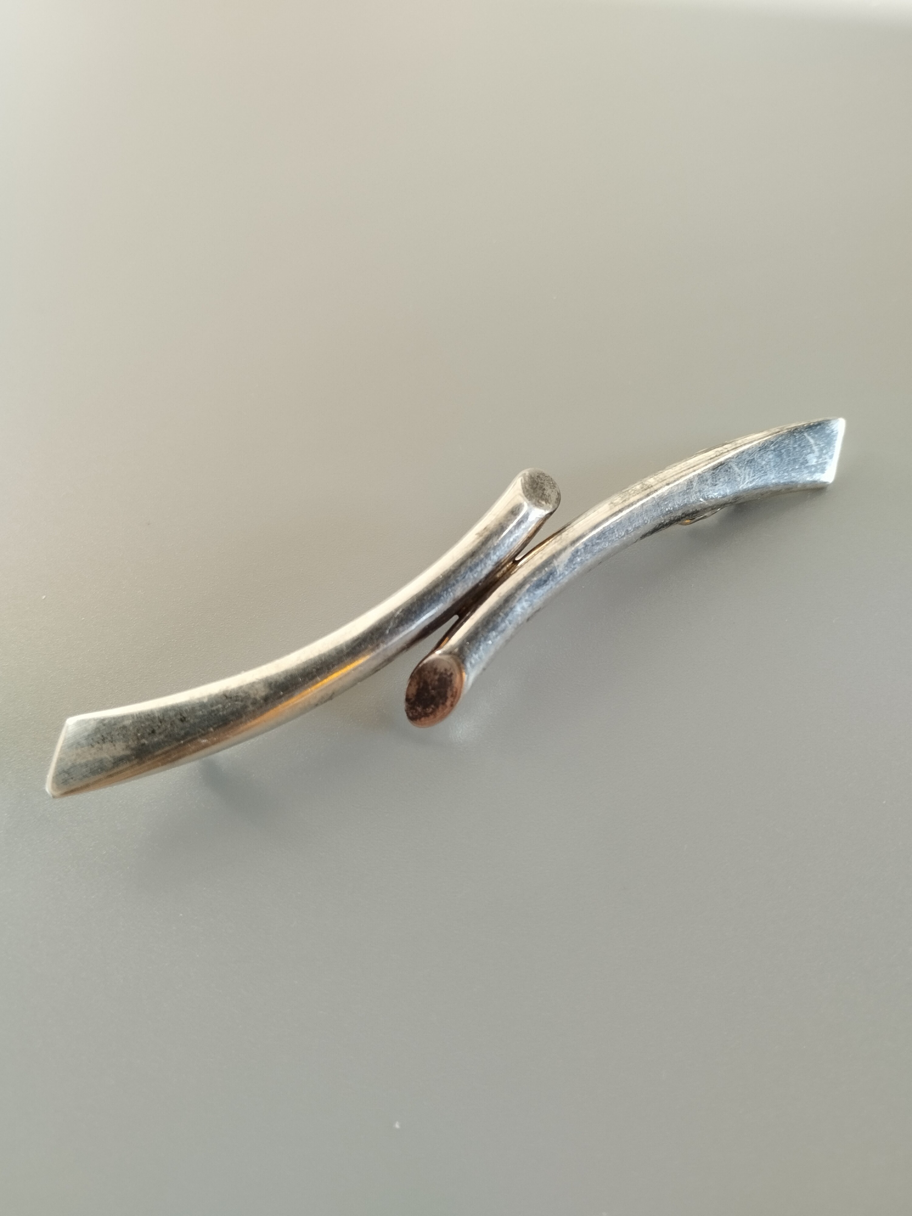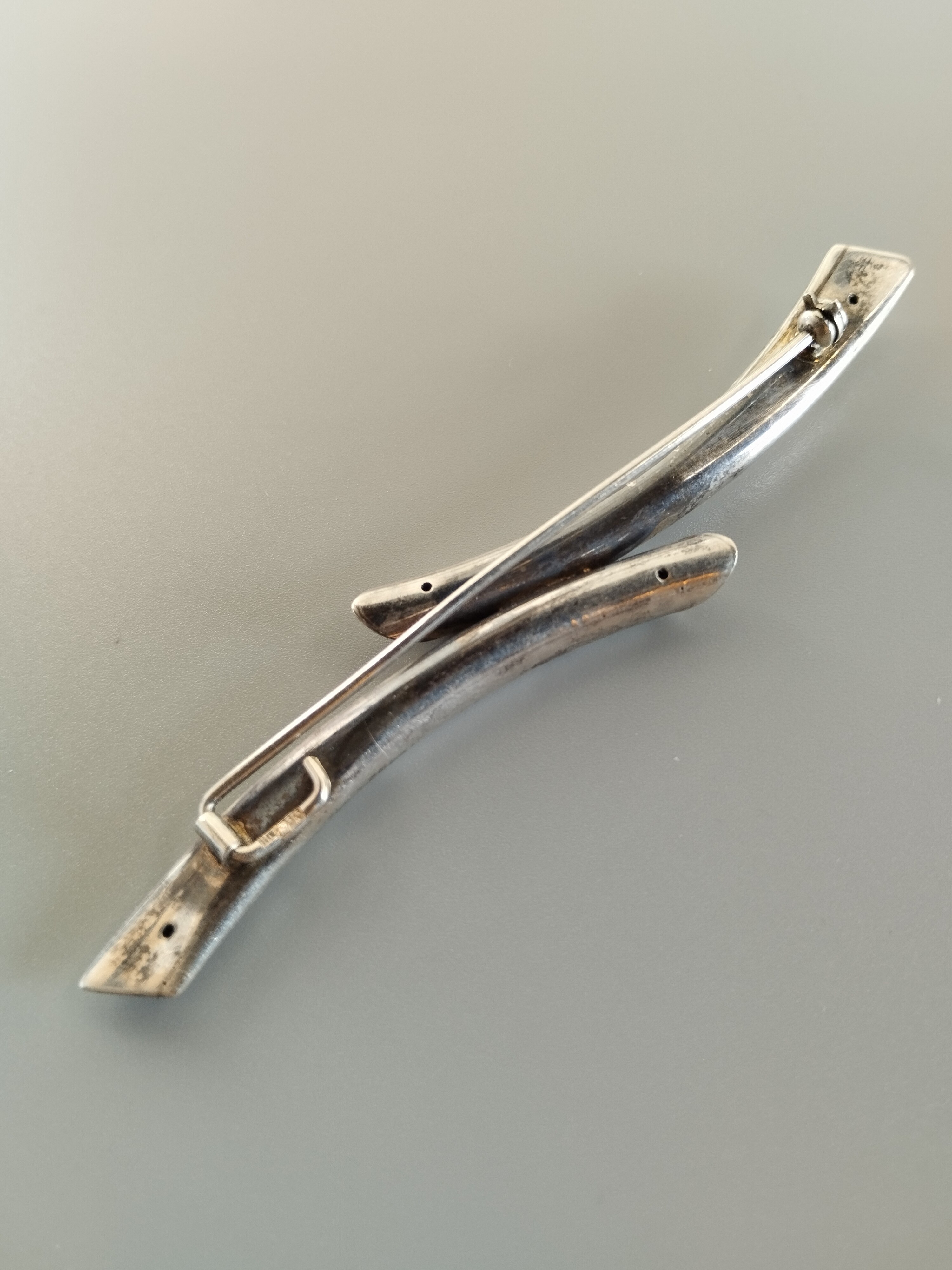 Broszka w stylu modernistycznym o geometrycznym kształcie wykonana z najwyższej jakości srebra.