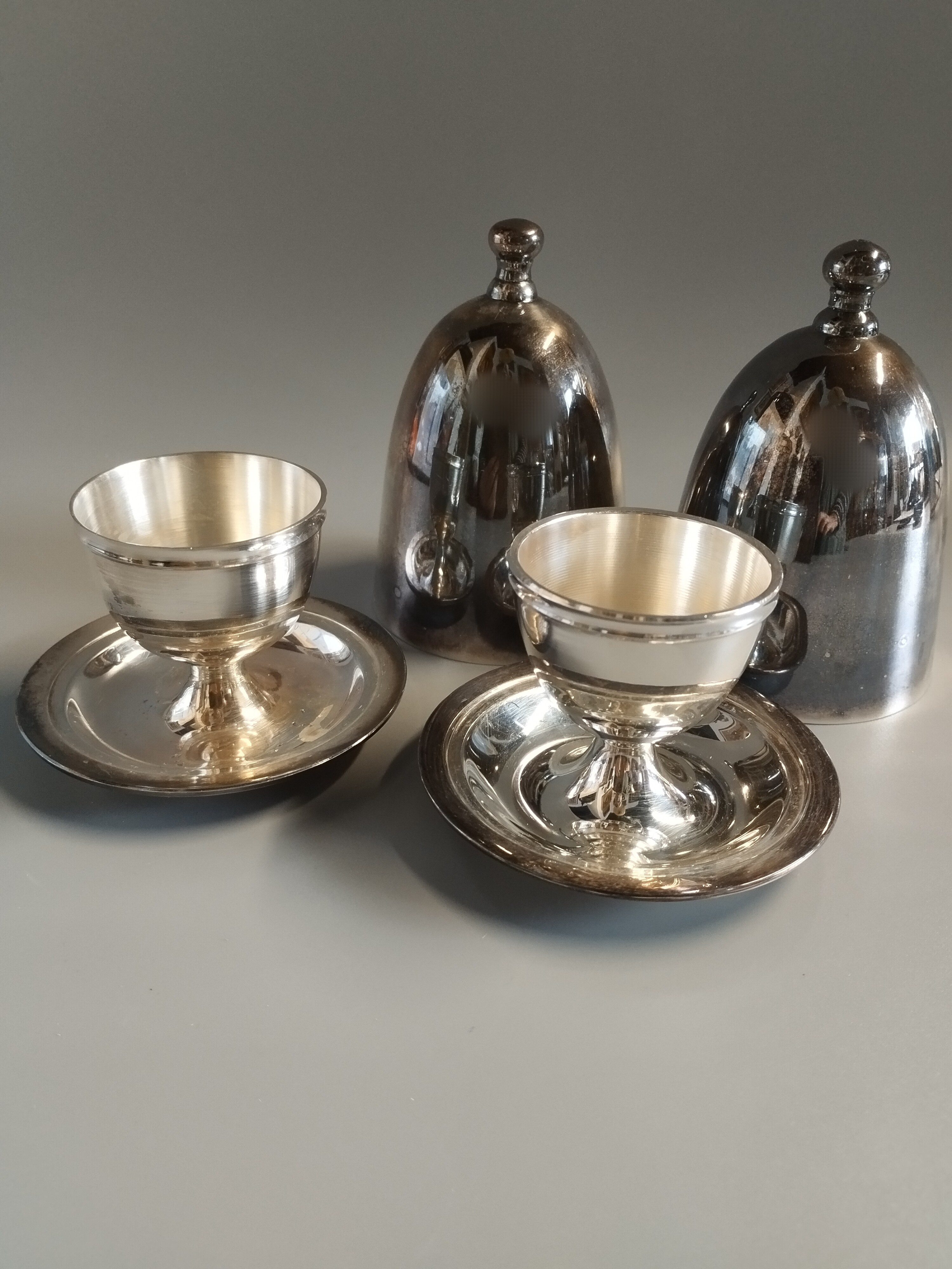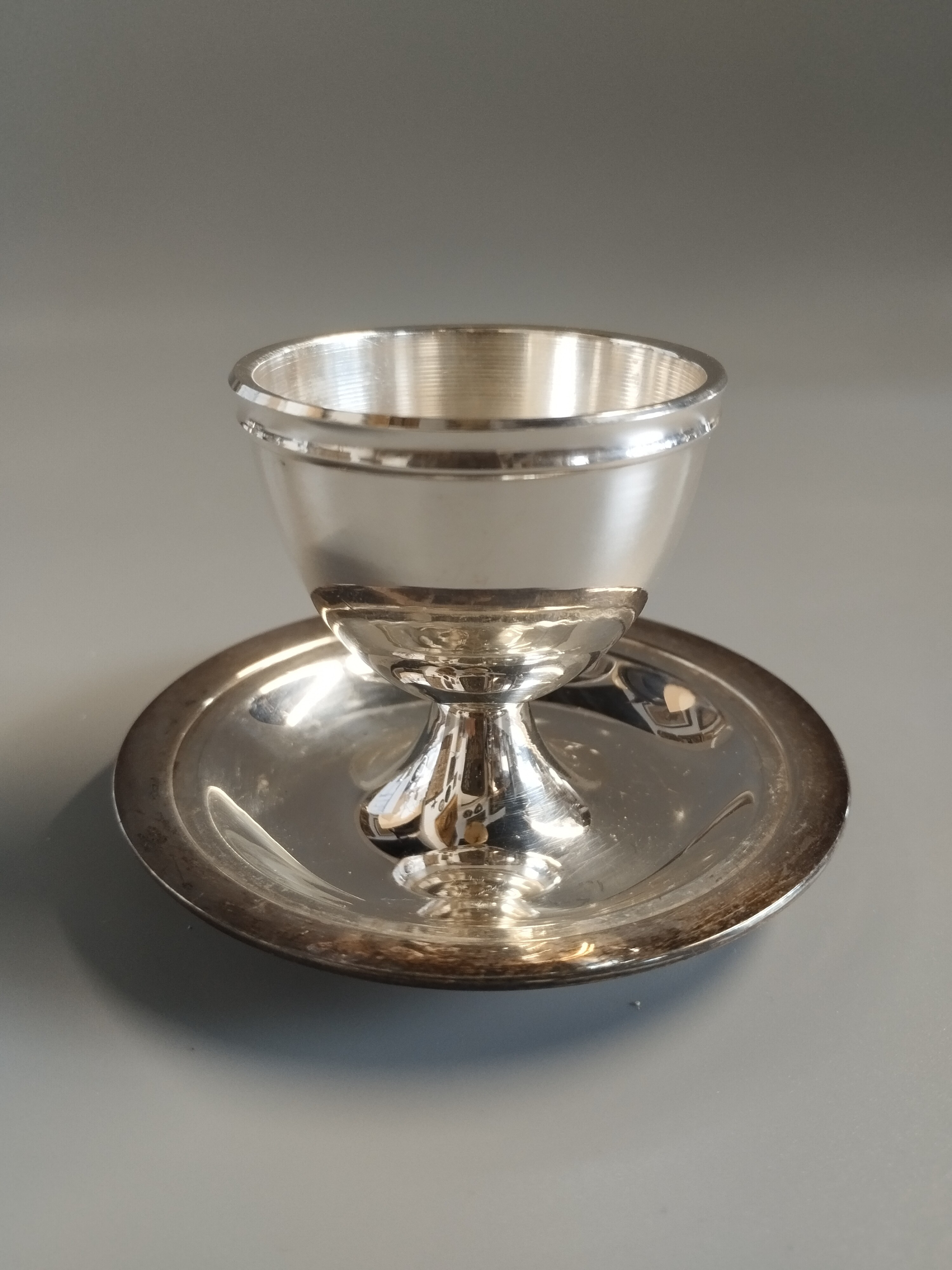 Kieliszki do jajek. Posrebrzane z klosikami w komplecie. Cena za 1 sztukę.